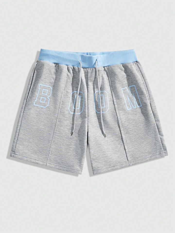 Street Life Herren Set aus Buchstaben Muster Lässig Rundhals Kurzarm Top und Shorts