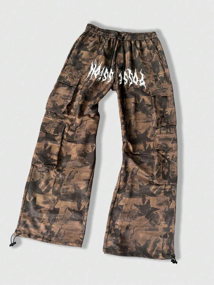 Street Life Herren Buchstaben Muster Multi-Taschen Weite Bein Loose Lässig Hose