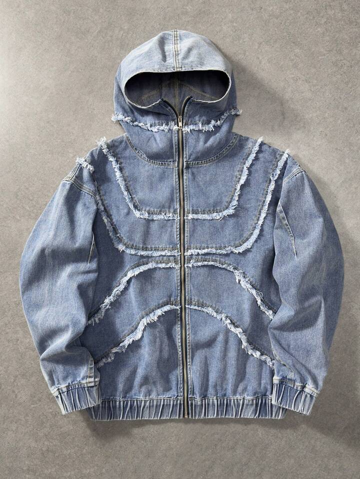 Street Life Herren Langarm Zip-Front Jacke aus Denim mit ausgefranstem Saum und Kapuze