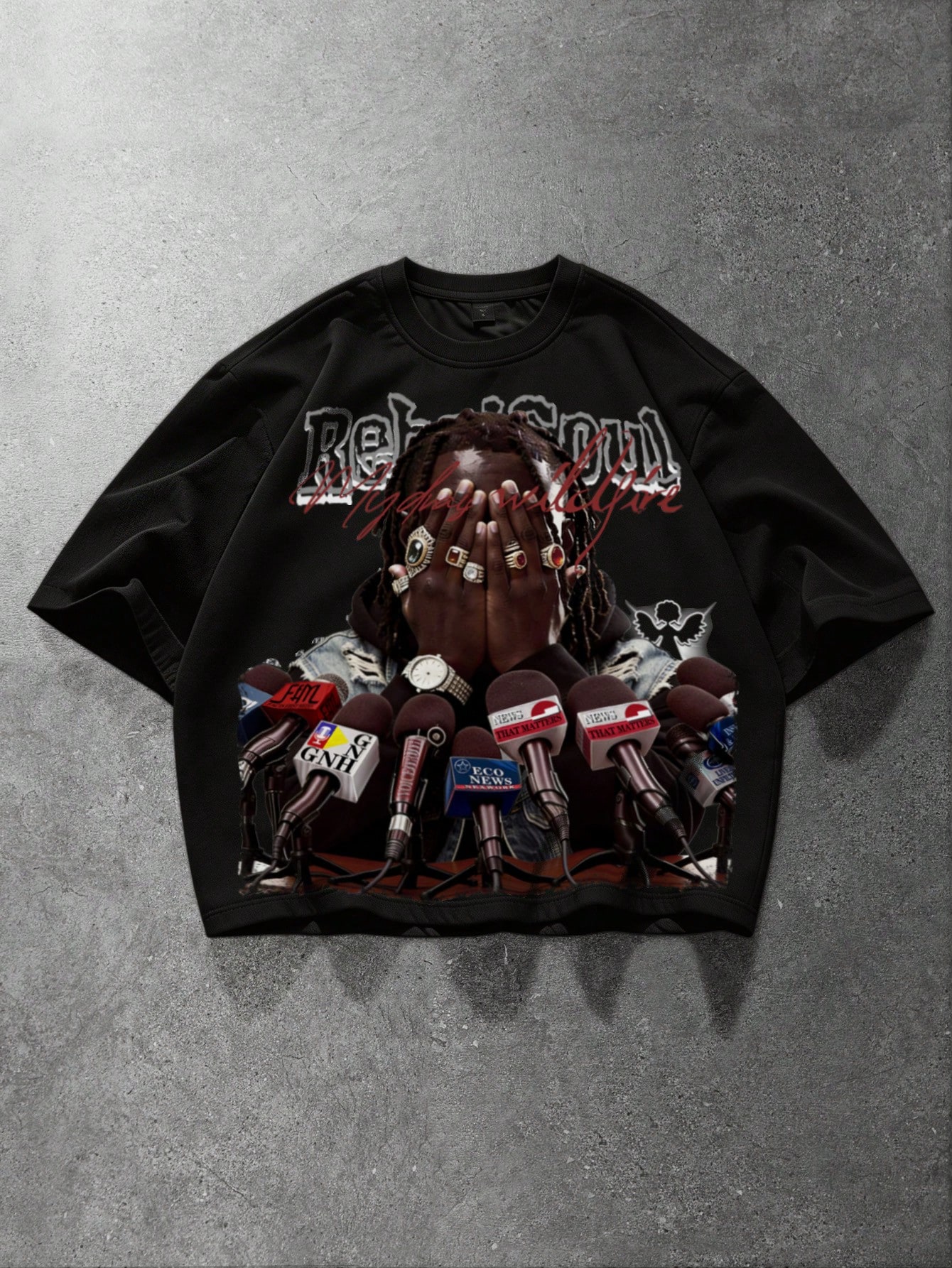Street Life Herren Loose Fit Drop-Shoulder Kurzarm T-Shirt mit Aufdruck
