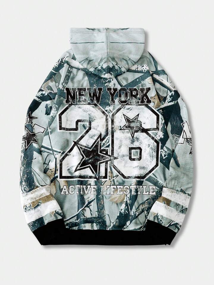 Street Life Herren Kapuzen Sweatshirt in weiter Passform mit Ast- und Tarnmuster, Vintage Streetwear, Schule