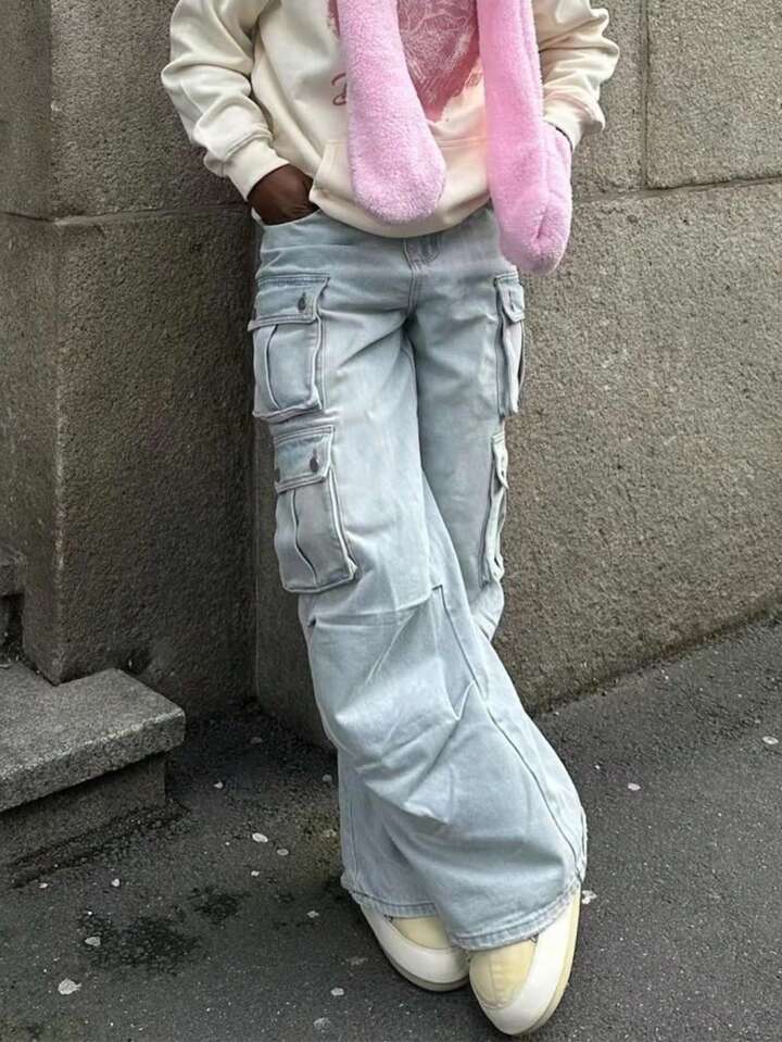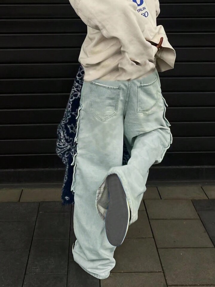 Street Life Herren weite Cargo Baggy Jeans mit weitem Bein und mehreren Taschen