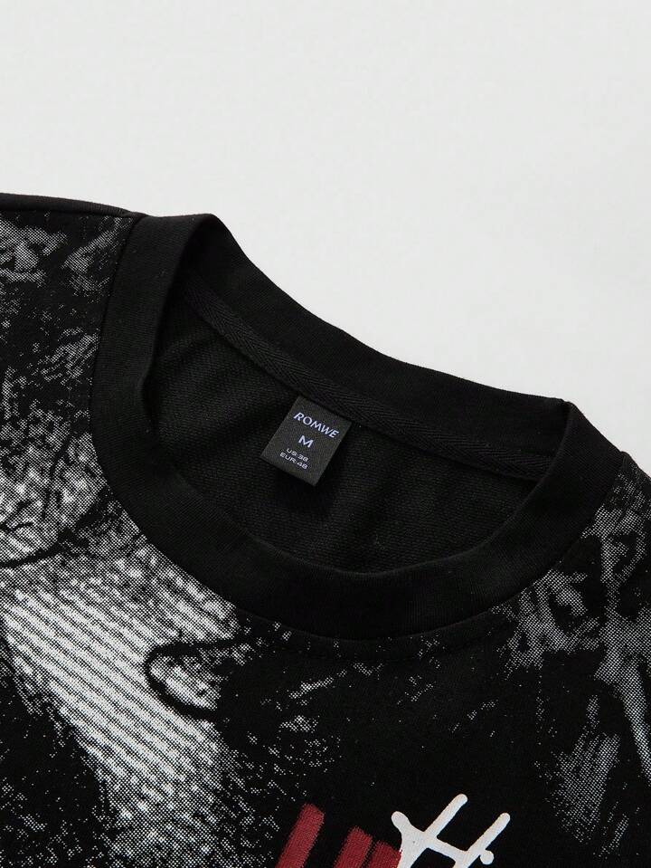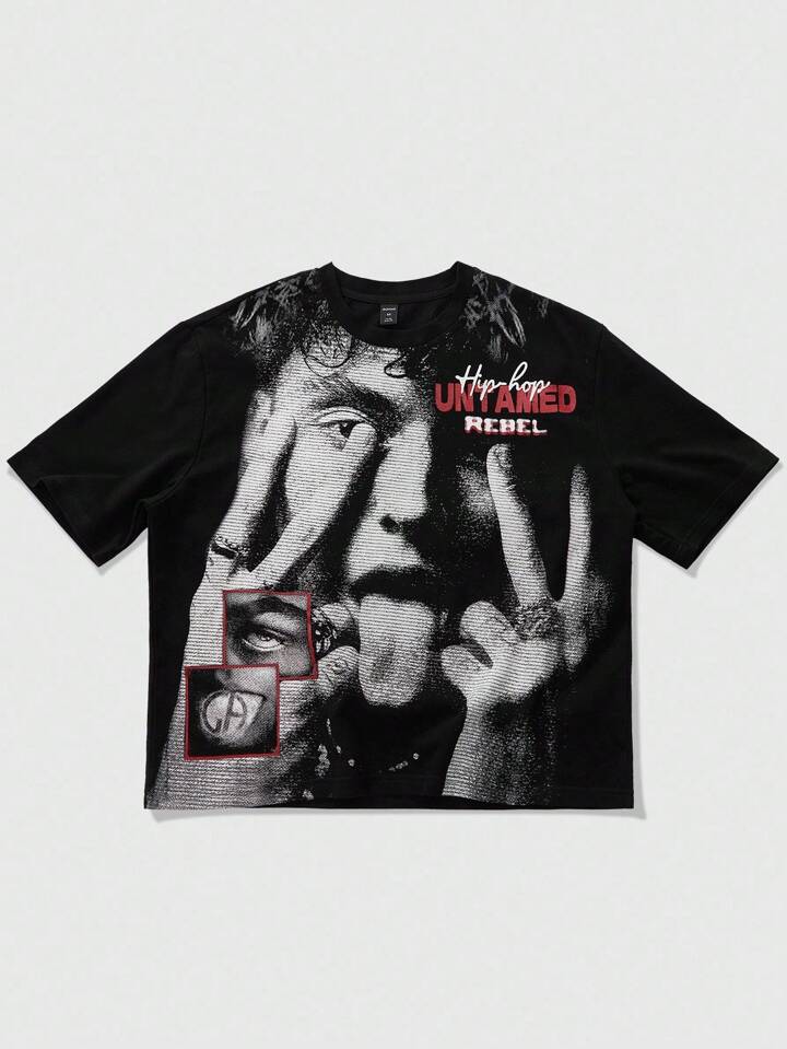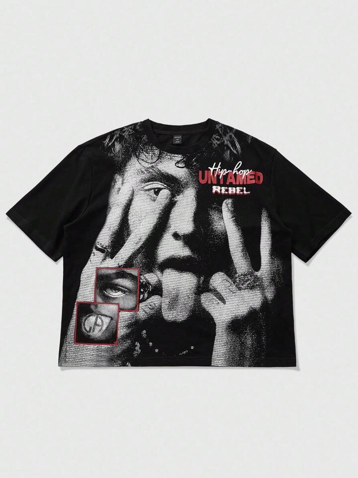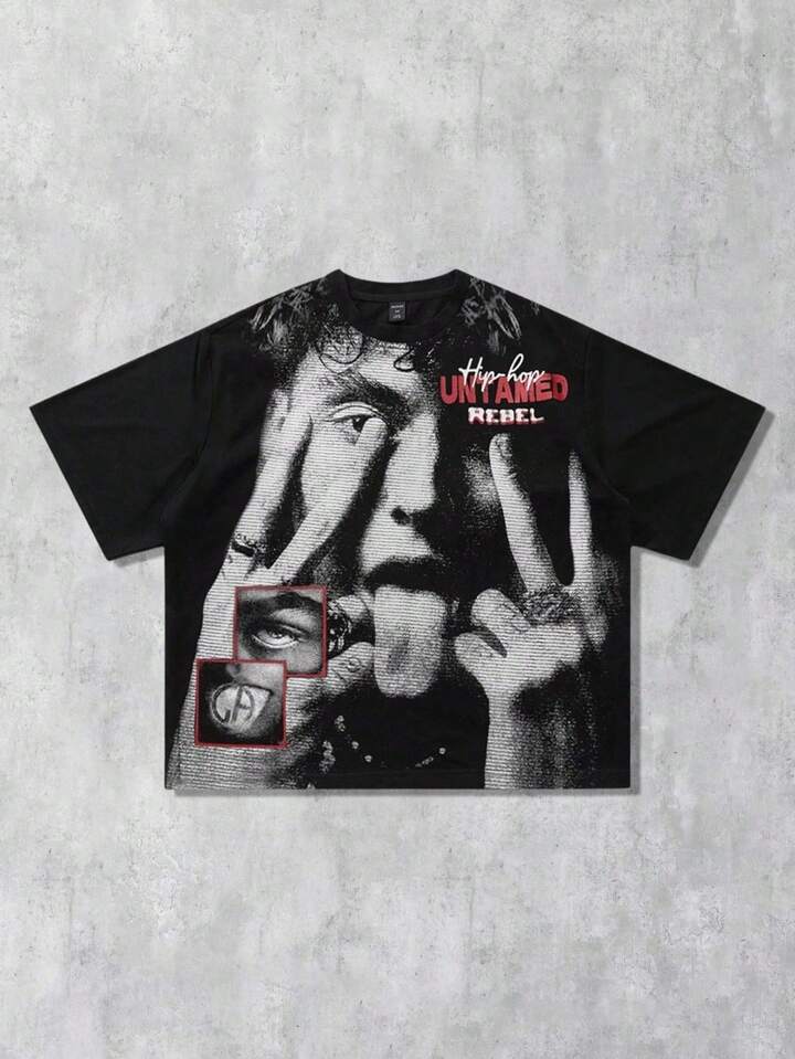 Street Life Herren Mesh Muster Technik Hip Hop Charakter bedrucktes Kurzarm T-Shirt, geeignet für den täglichen Gebrauch, Frühling/Sommer
