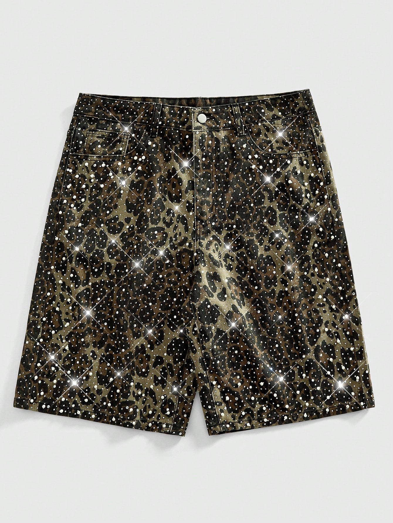 Street Life Herren Perlmutt & Diamant Leoparden Muster Loose Fit Denim-Shorts