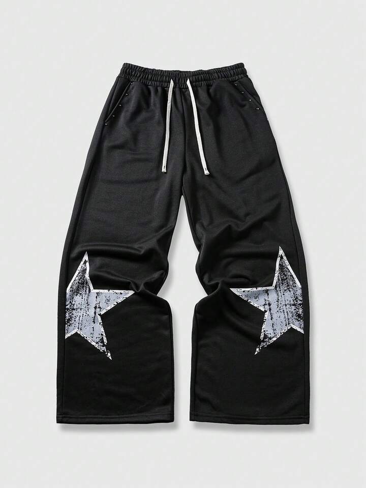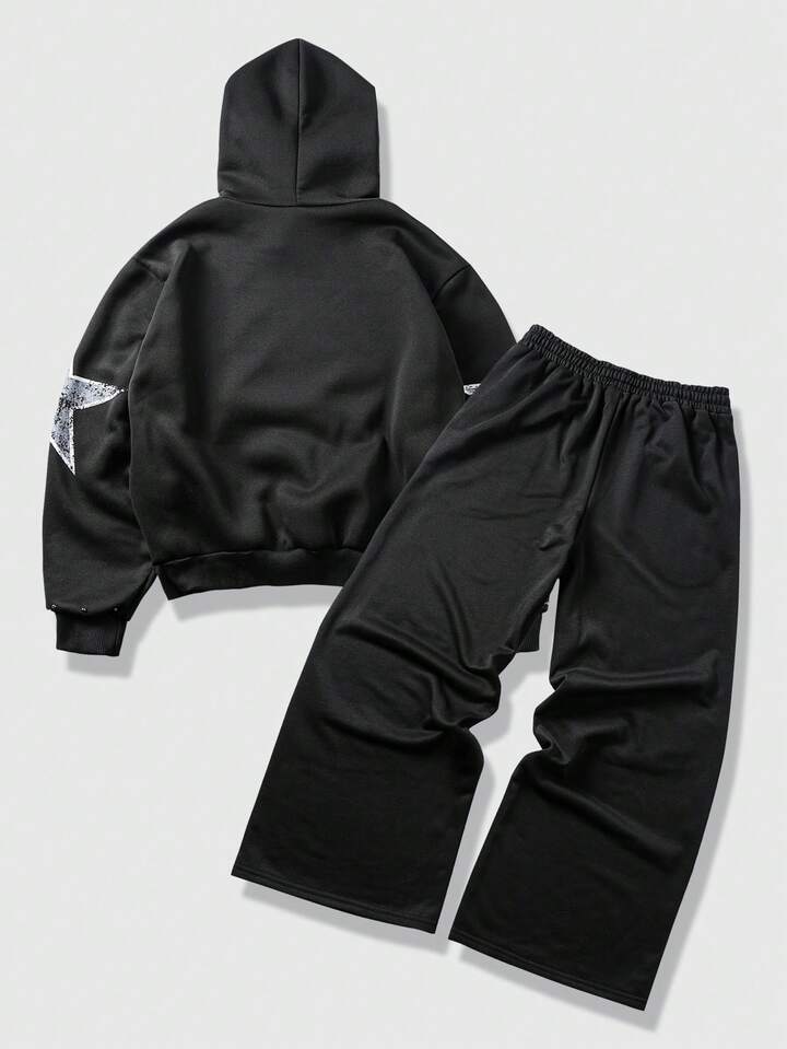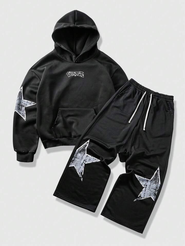 Street Life Herren Set aus Hoodie mit Pentagramm-Muster und Jogginghose mit Tunnelzug Taille