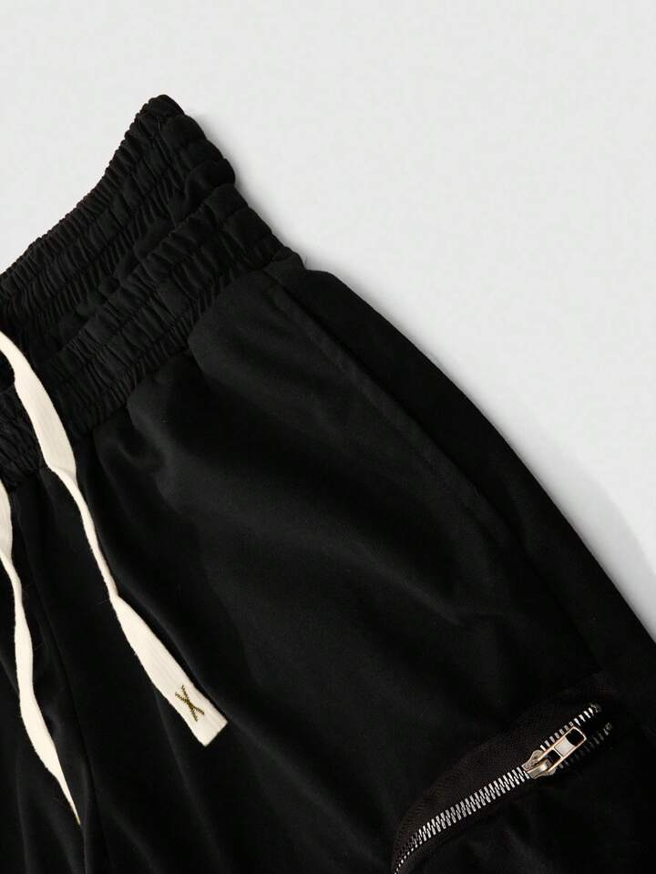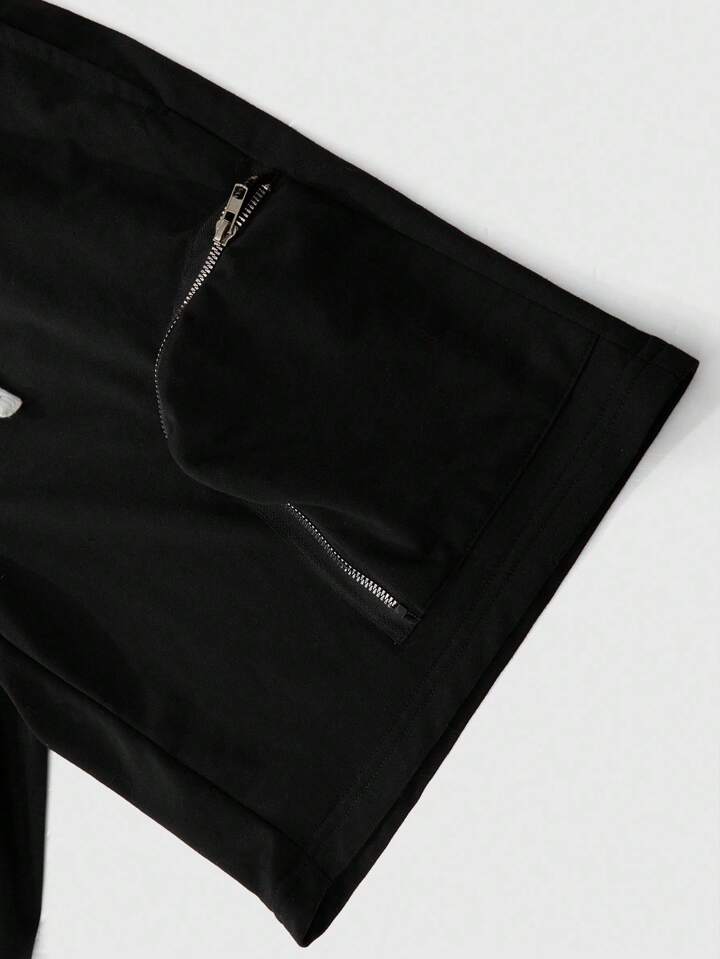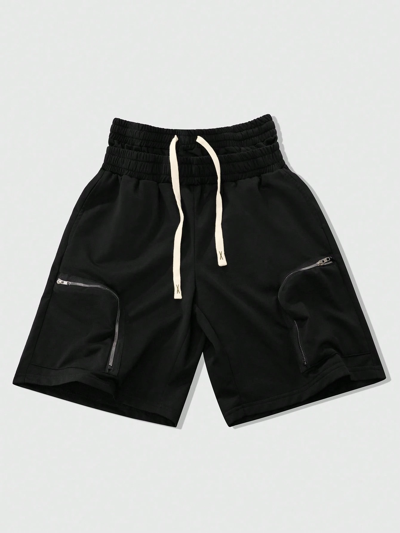 Street Life Herren personalisierte schwarze Shorts mit Doppelbund, hoher Taillenbund mit Kordelzug und multifunktionalem Reißverschlusstaschendesign