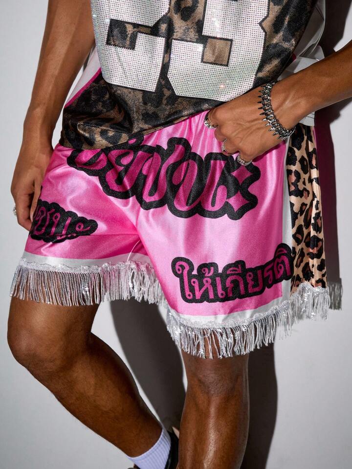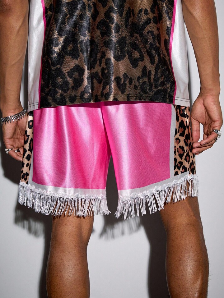 Street Life Herren rosa Boxershorts mit Leopard Muster an den Seitennähten und Quasten-Saum, tolles Geschenk für Freund/Freundin