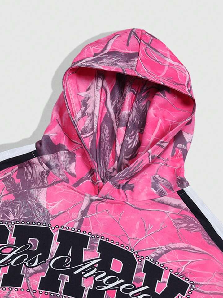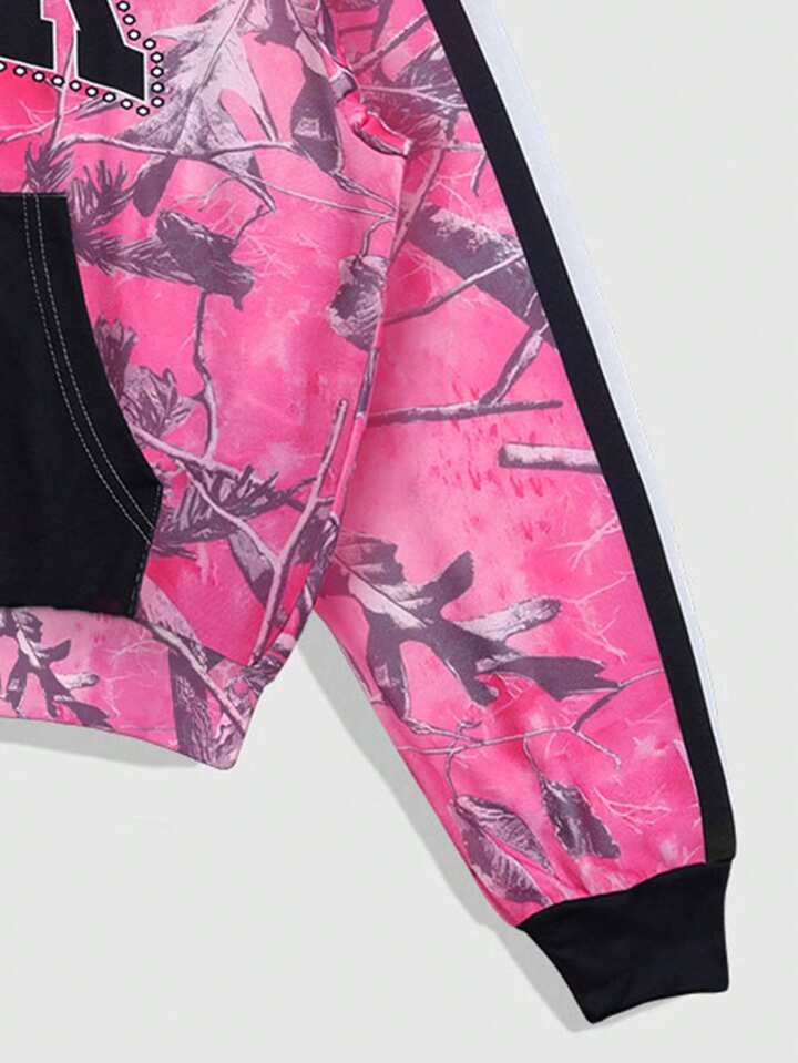 Street Life Herren einfarbige Patchwork Langarm Kapuzenpullover mit Tasche und Buchstaben Muster, minimalistisches Design