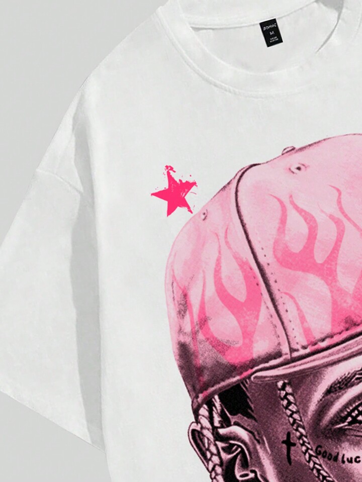 Street Life Herren Kurzarm T-Shirt mit Portrait Muster, geeignet für den täglichen Gebrauch im Frühling und Sommer, Schule