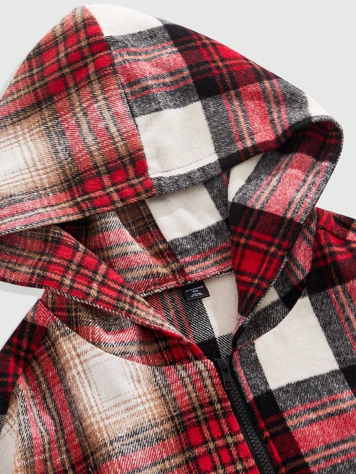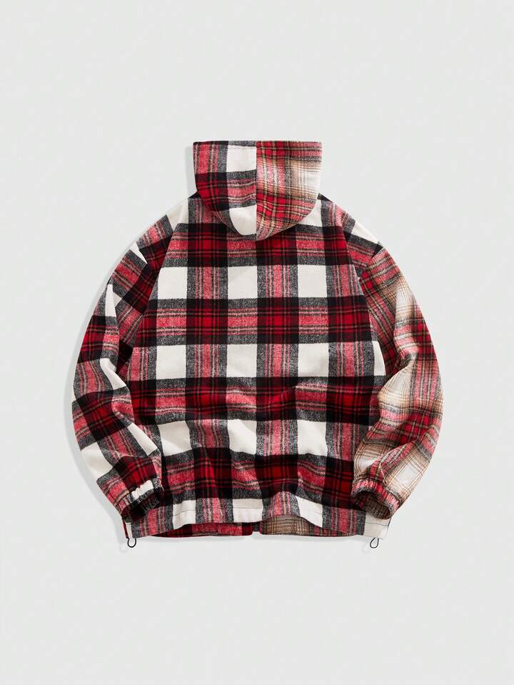 Street Life Herren Prep Karomuster Langarm Reißverschluss Kapuzenjacke, Herbst/Winter