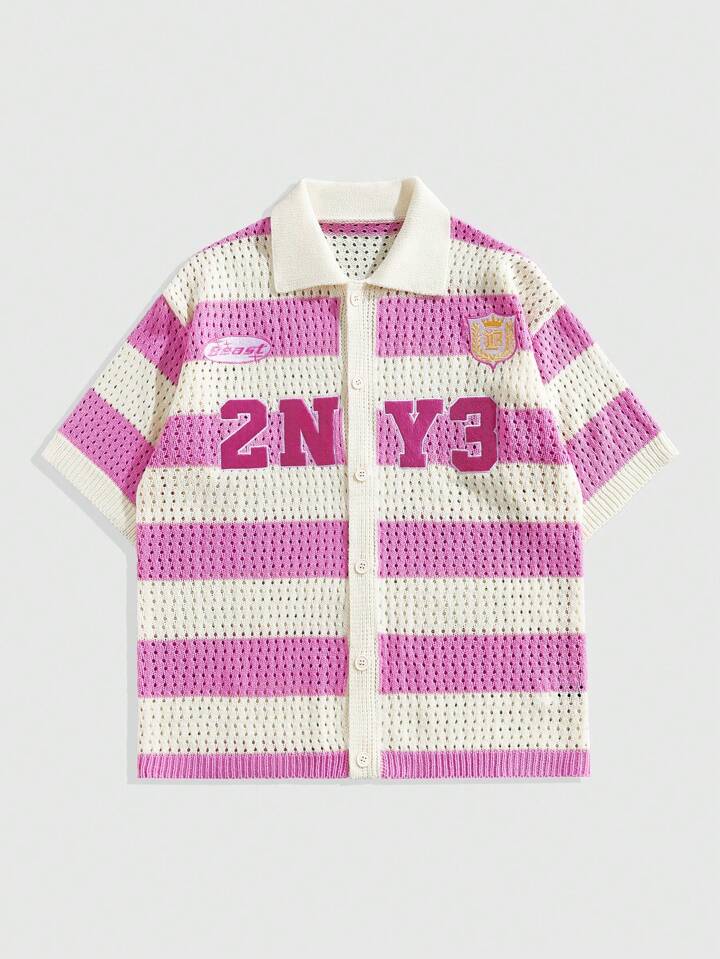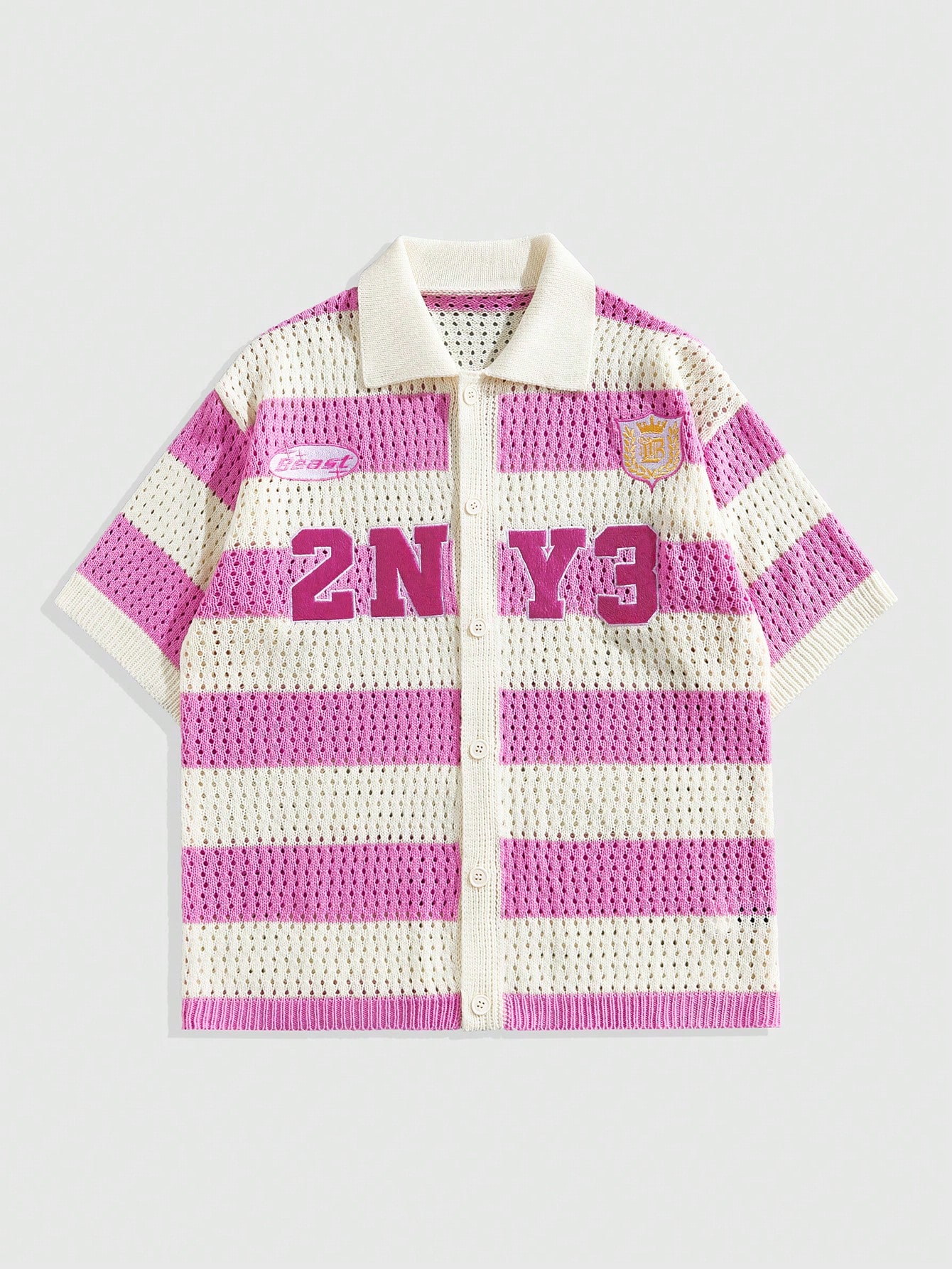 Street Life Herren Locker geschnittener Pullover mit Schulterfallen, Hohlstreifen und Knopfleiste, ideal für den Urlaubsoutfit
