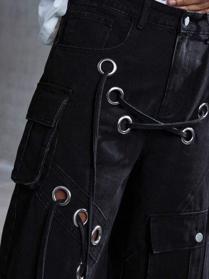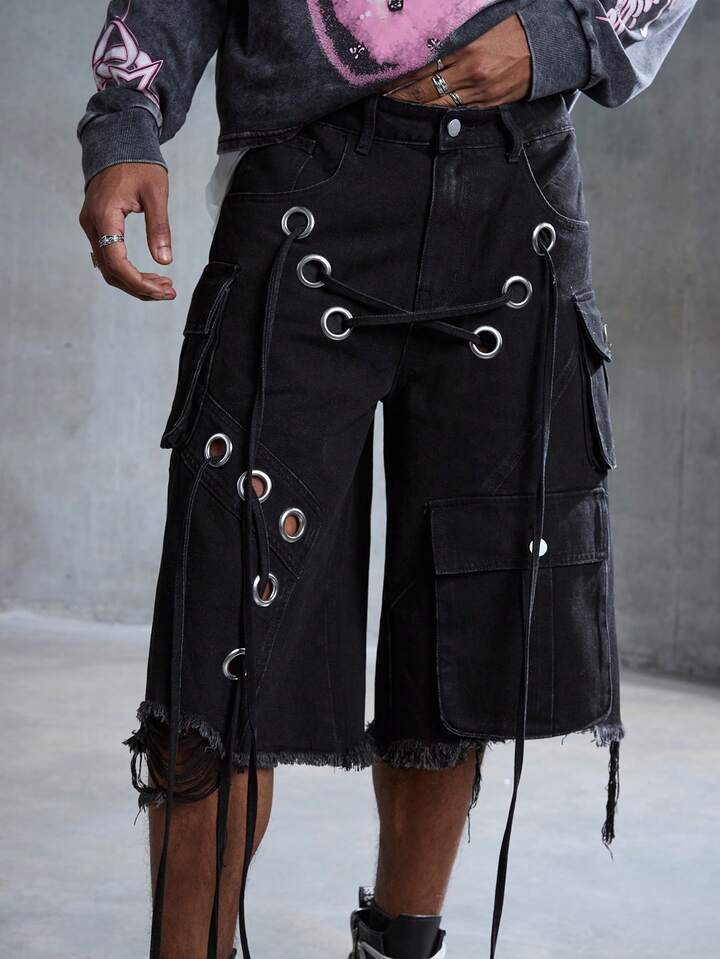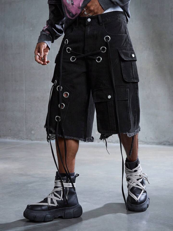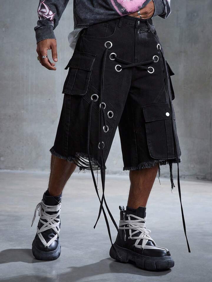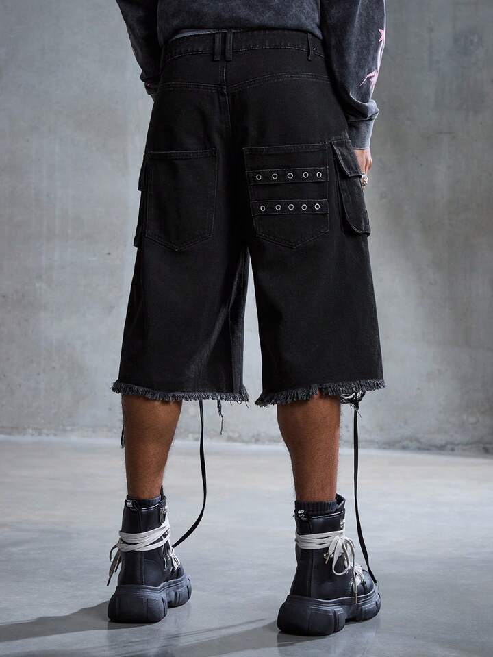 Street Life Herren Punk Street Style Destroyed Loose Cargo Shorts mit niedriger Taille