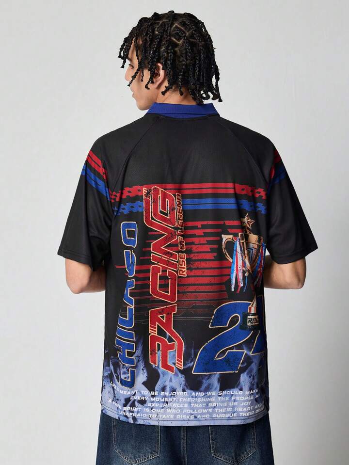 Street Life Herren Poloshirt mit Buchstaben- und Auto-Grafik, Kurzarm