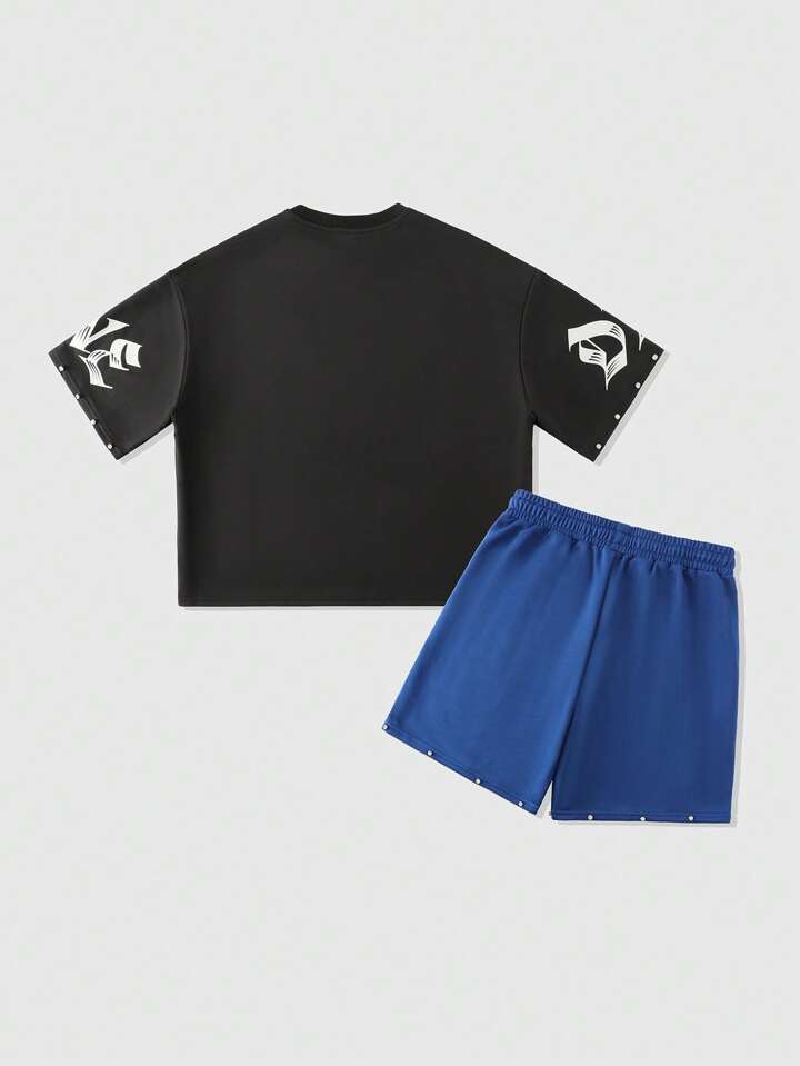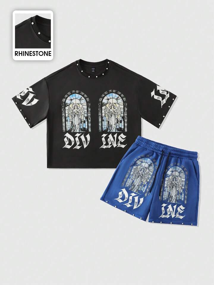 Street Life Herren T-Shirt Set mit Diamant-Muster, lockere Kurzarm-Stil