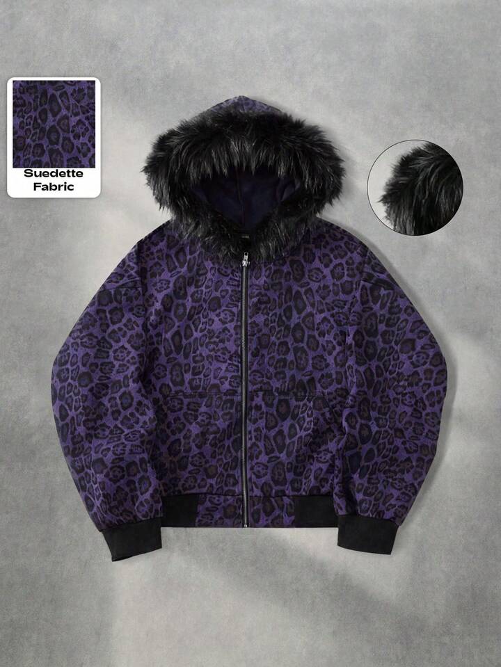 Street Life Herren Retro Amerikanischer Leoparden-Muster Kapuzenpullover