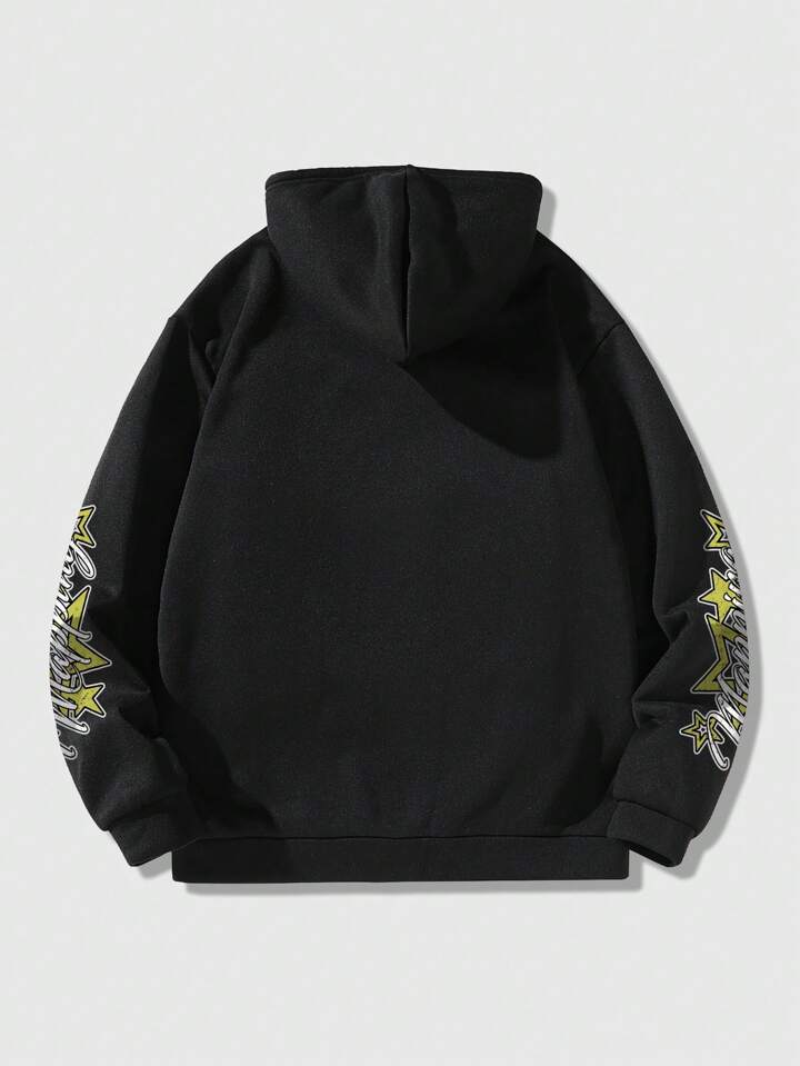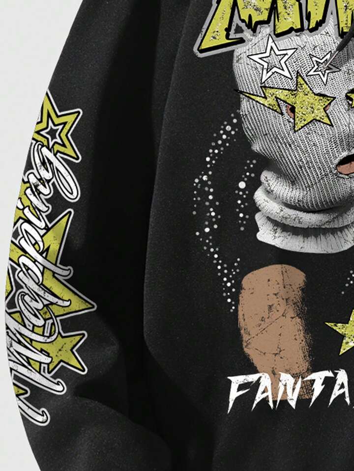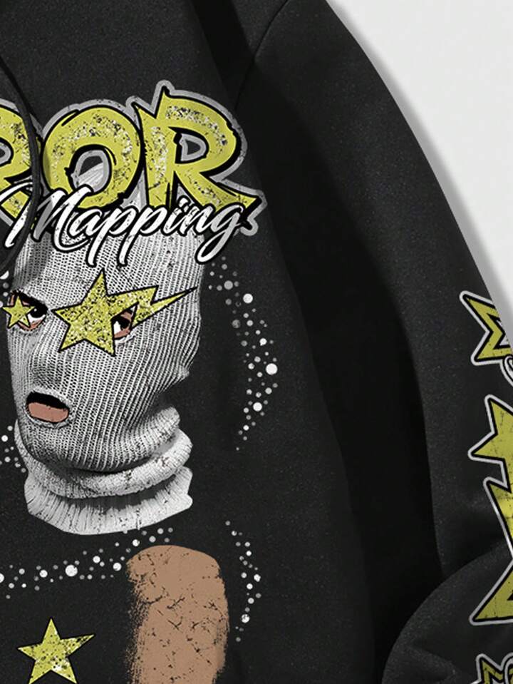 Street Life Herren Retro Streetwear Figure Muster Reißverschluss Kapuzen Sweatshirt mit Kordelzug