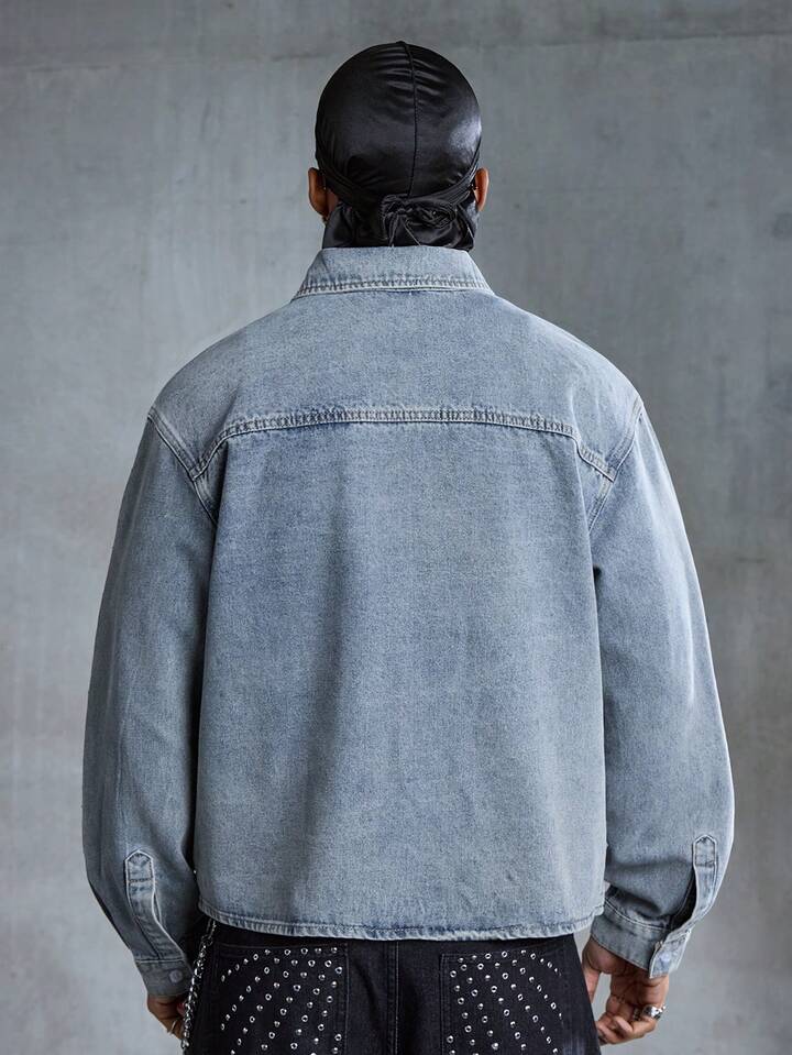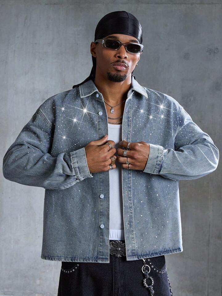 Street Life Herren Denim-Hemd mit Langarm und Strass Verzierung