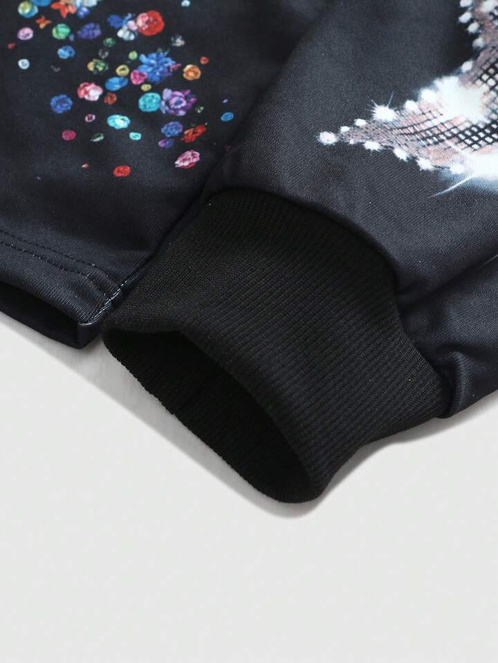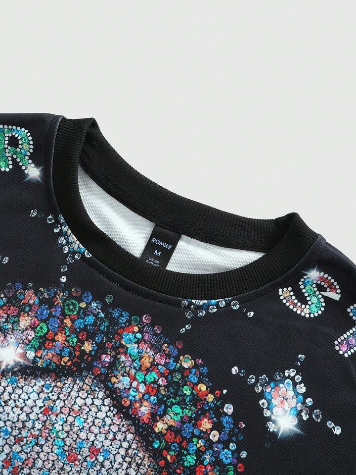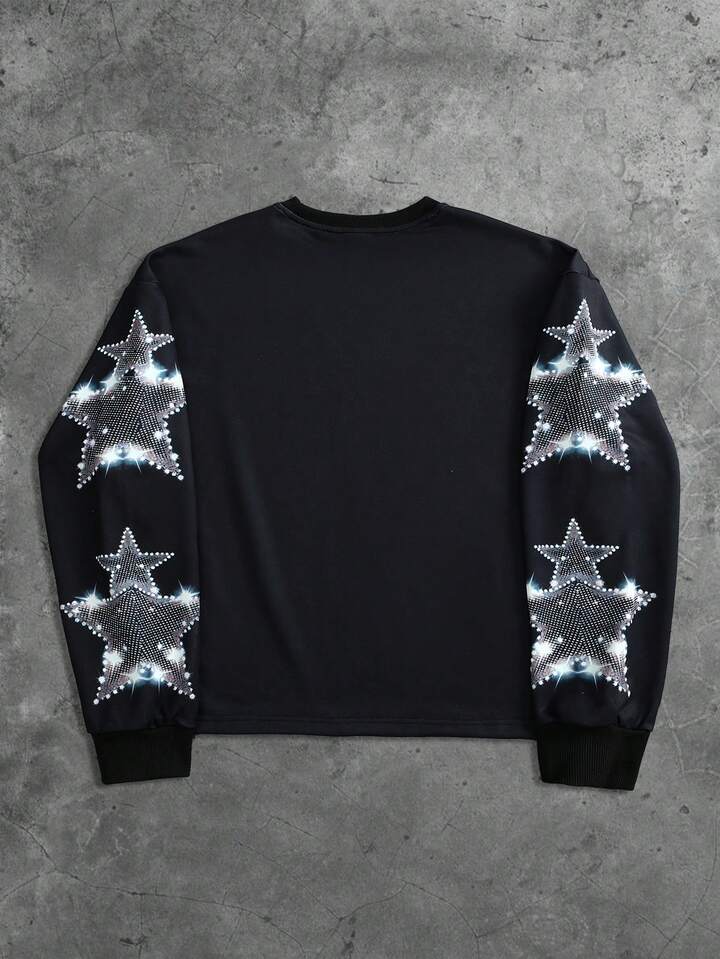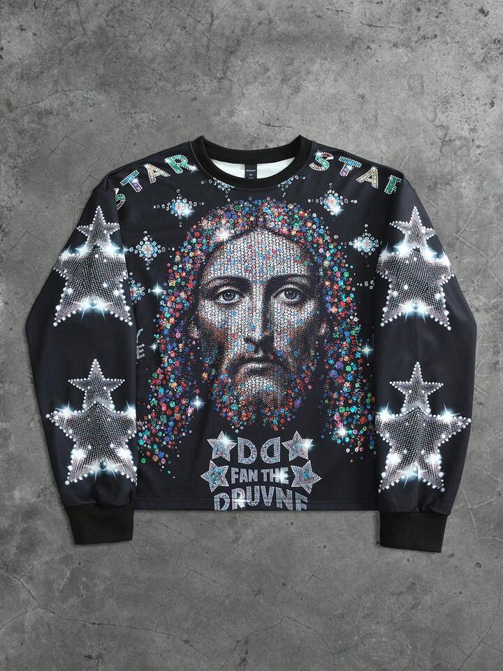 Street Life Herren Rundhals Langarm Sweatshirt für Frühling, Herbst und Winter, mit Strass Jesus Glaubens religiösem Aufdruck, geeignet für Streetwear und Zusammenkünfte