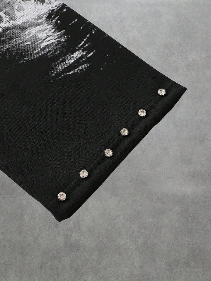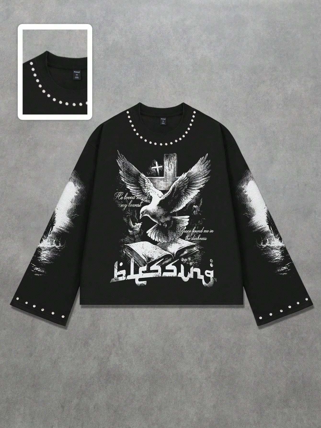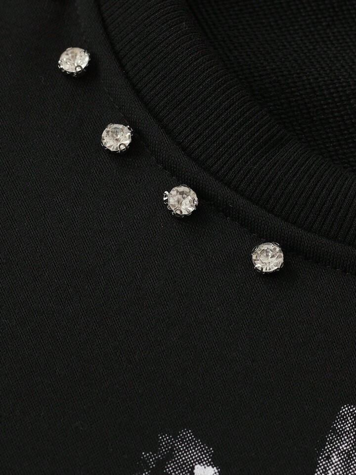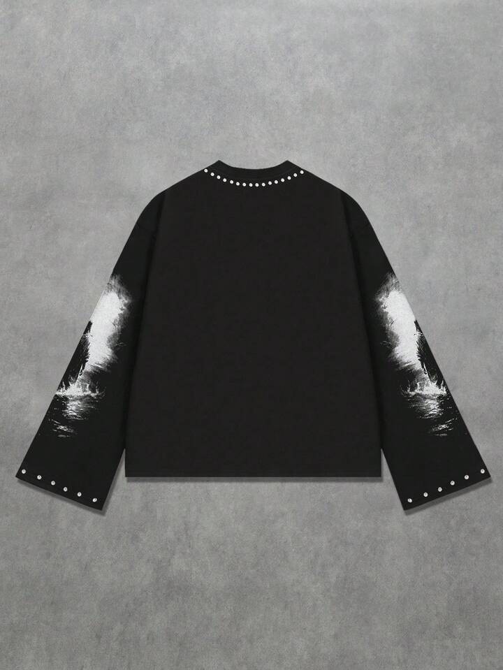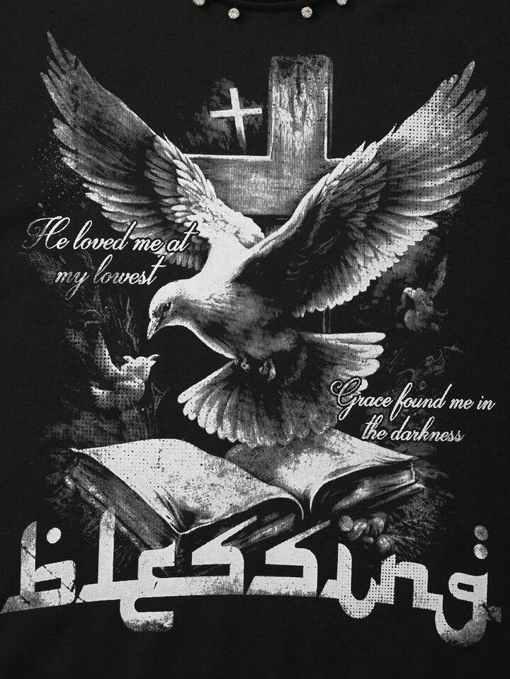 Street Life Herren Rundhals Langarm T-Shirt mit funkelndem Diamant-Tauben-Muster, 2000er Jahre Stil