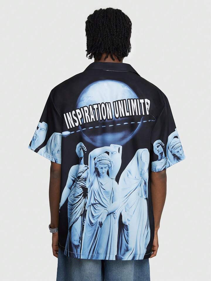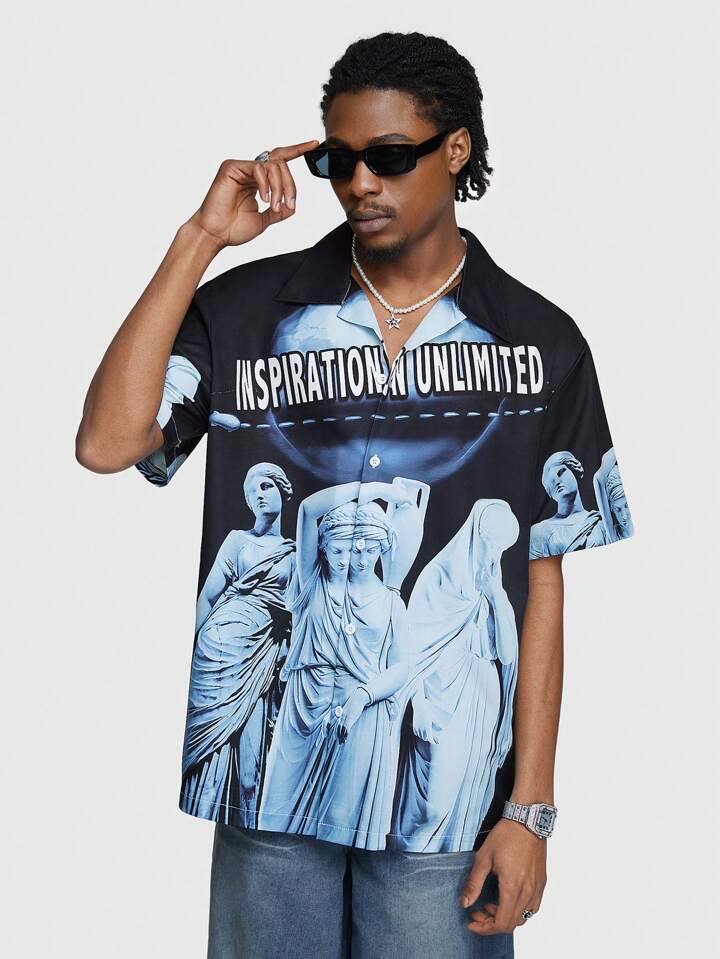 Street Life Herren Einreiher Hemd mit Skulptur Muster, Kurzarm, Sommer
