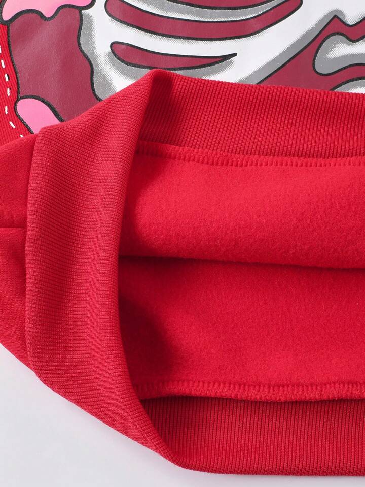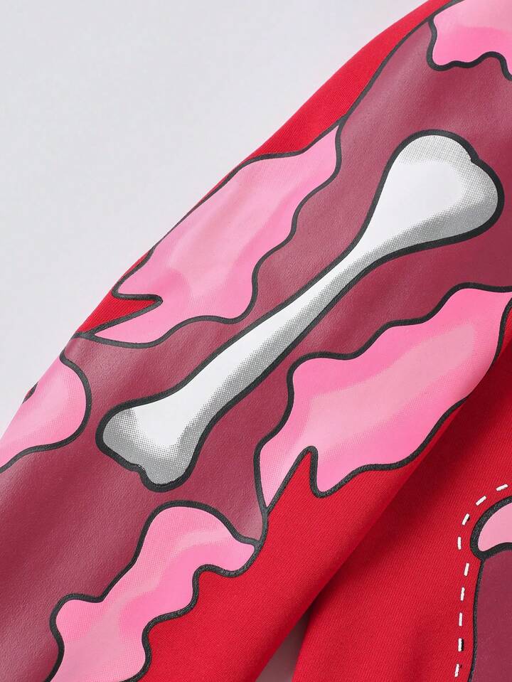 Street Life Herren Skelett Muster durchsichtiger Kapuzenpullover, Streetwear Rot Hoodie
