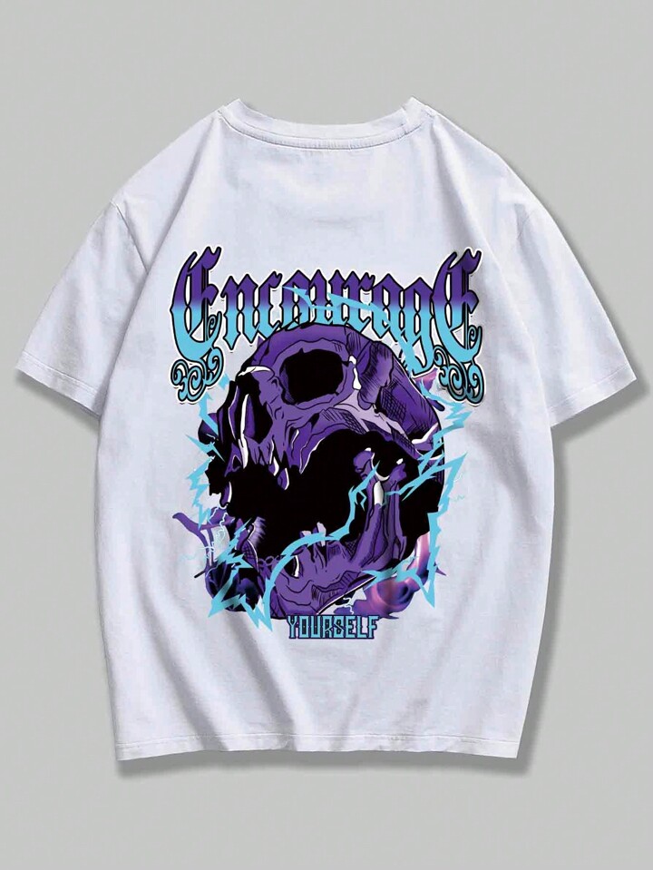 Street Life Herren T-shirt Mit Kurzen Ärmeln Und Bedrucktem Schädel Und Text Im Casual-stil