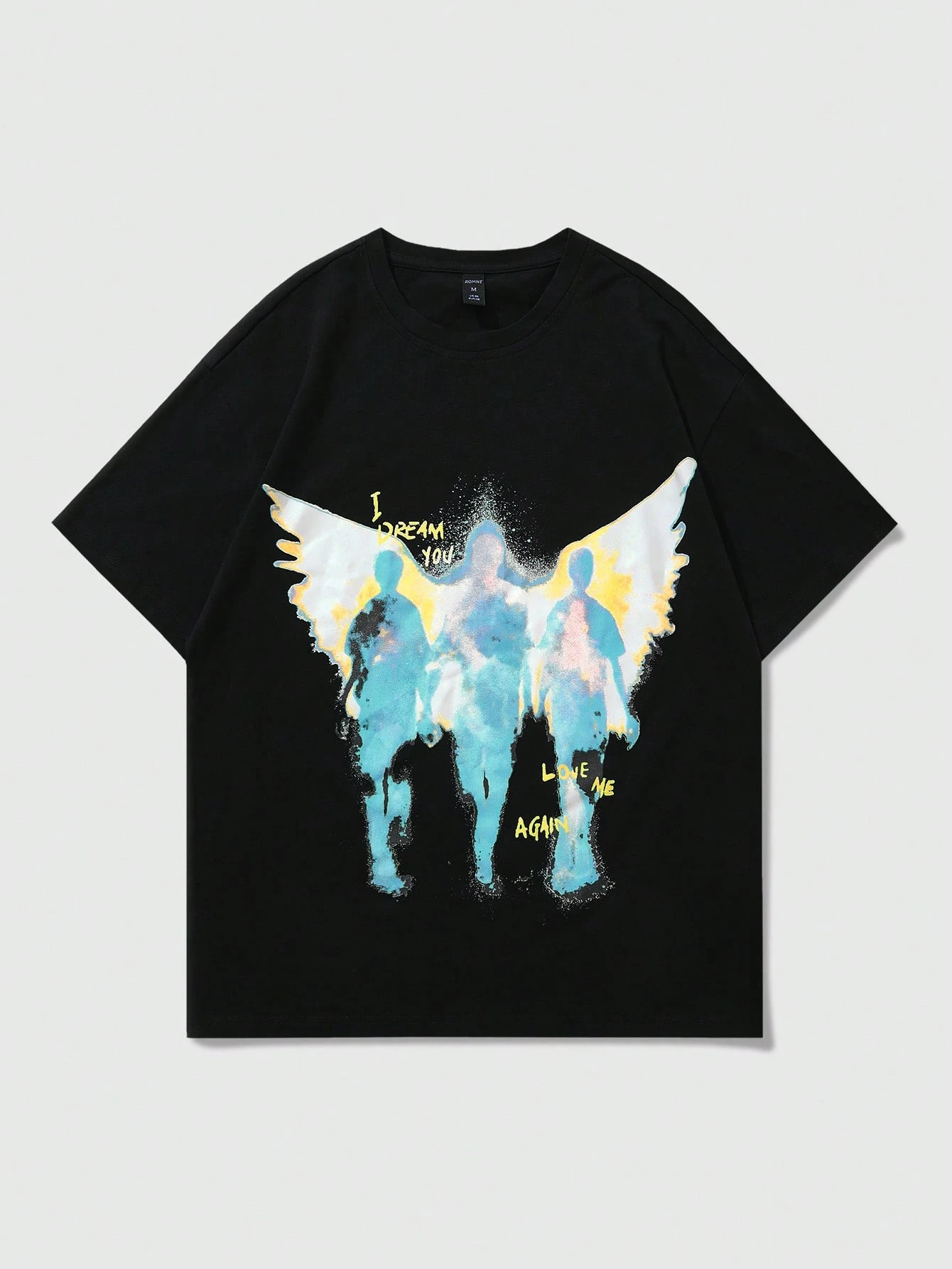 Street Life Herren Lässig T-Shirt mit Kurzarm, Rundhalsausschnitt, Slogan- und Engelaufdruck, vielseitig einsetzbar