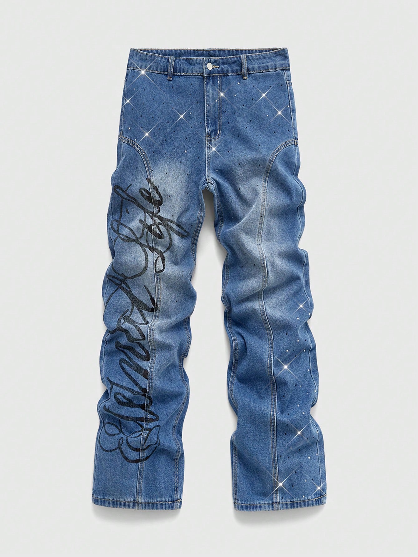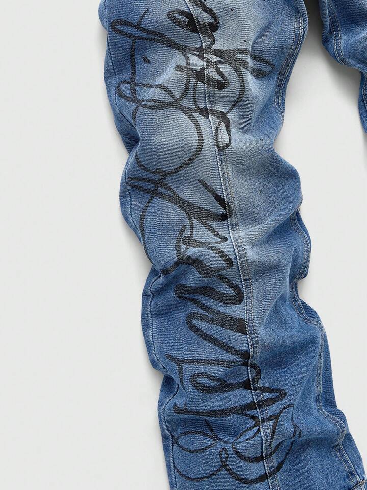 Street Life Herren Jeans mit Slogan-Muster, geeignet für den täglichen Gebrauch, Frühling/Sommer