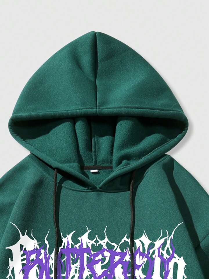 Street Life Herren Hoodie mit Buchstabe Muster und Tunnelzug, thermisch gefüttert, für Herbst/Winter