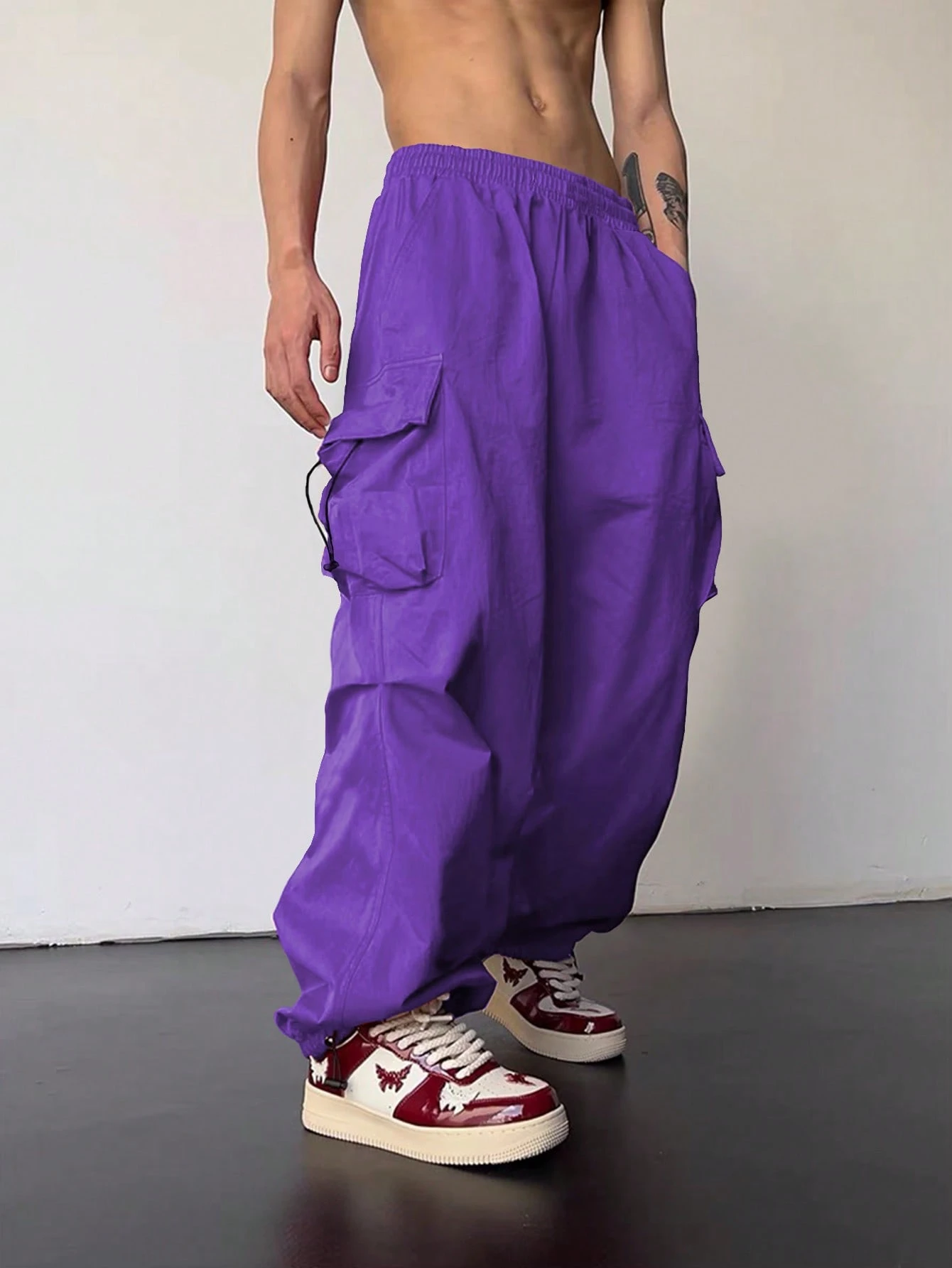 Street Life Herren einfarbige Hosen mit elastischem Bund, Taschen und weitem Schnitt
