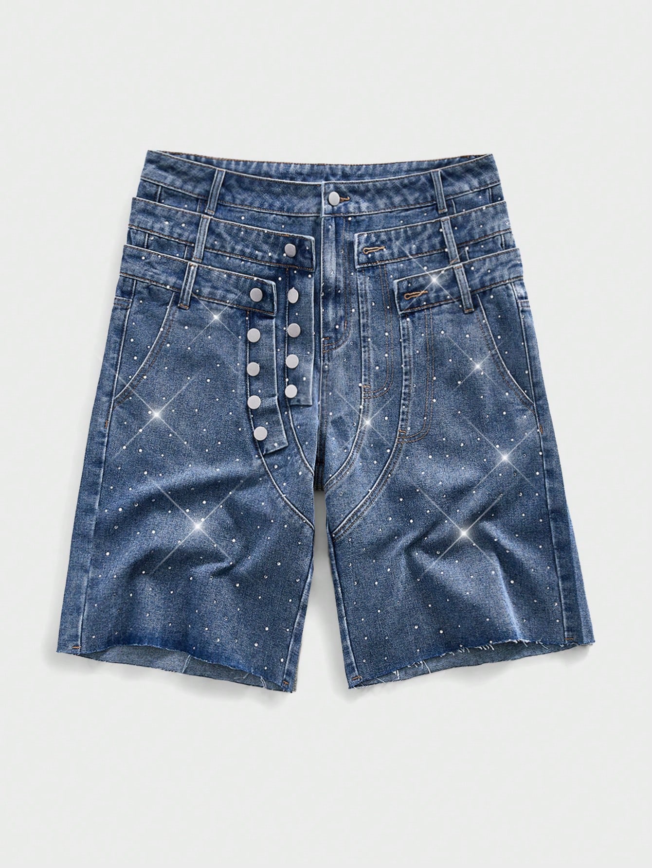 Street Life Herren Denim Shorts mit glitzernden Diamant-Verzierungen an 3-lagigem Bund