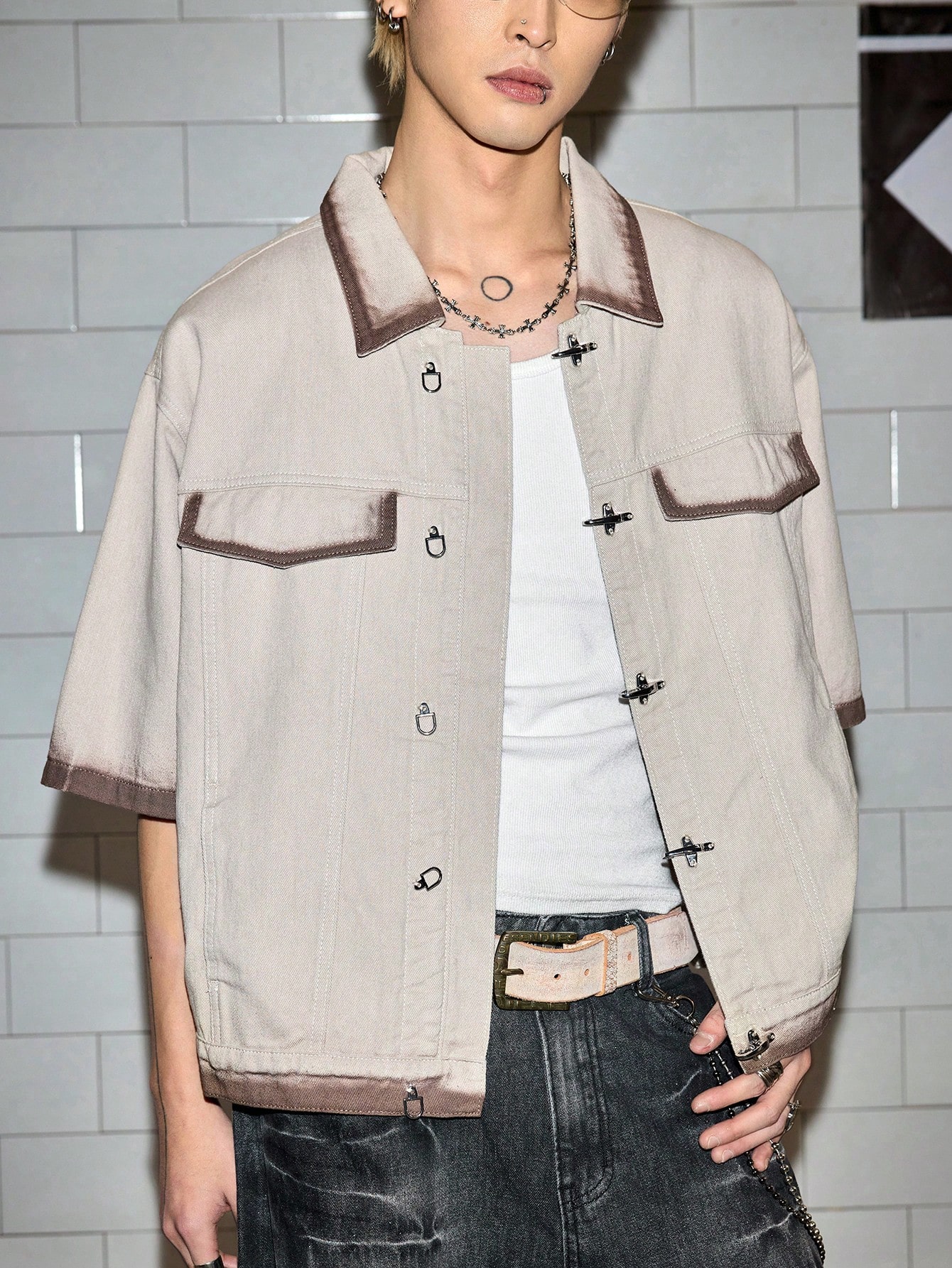 Street Life Herren Lässig Jeanshemd in gesprühter Braunfärbung mit Metallknöpfen