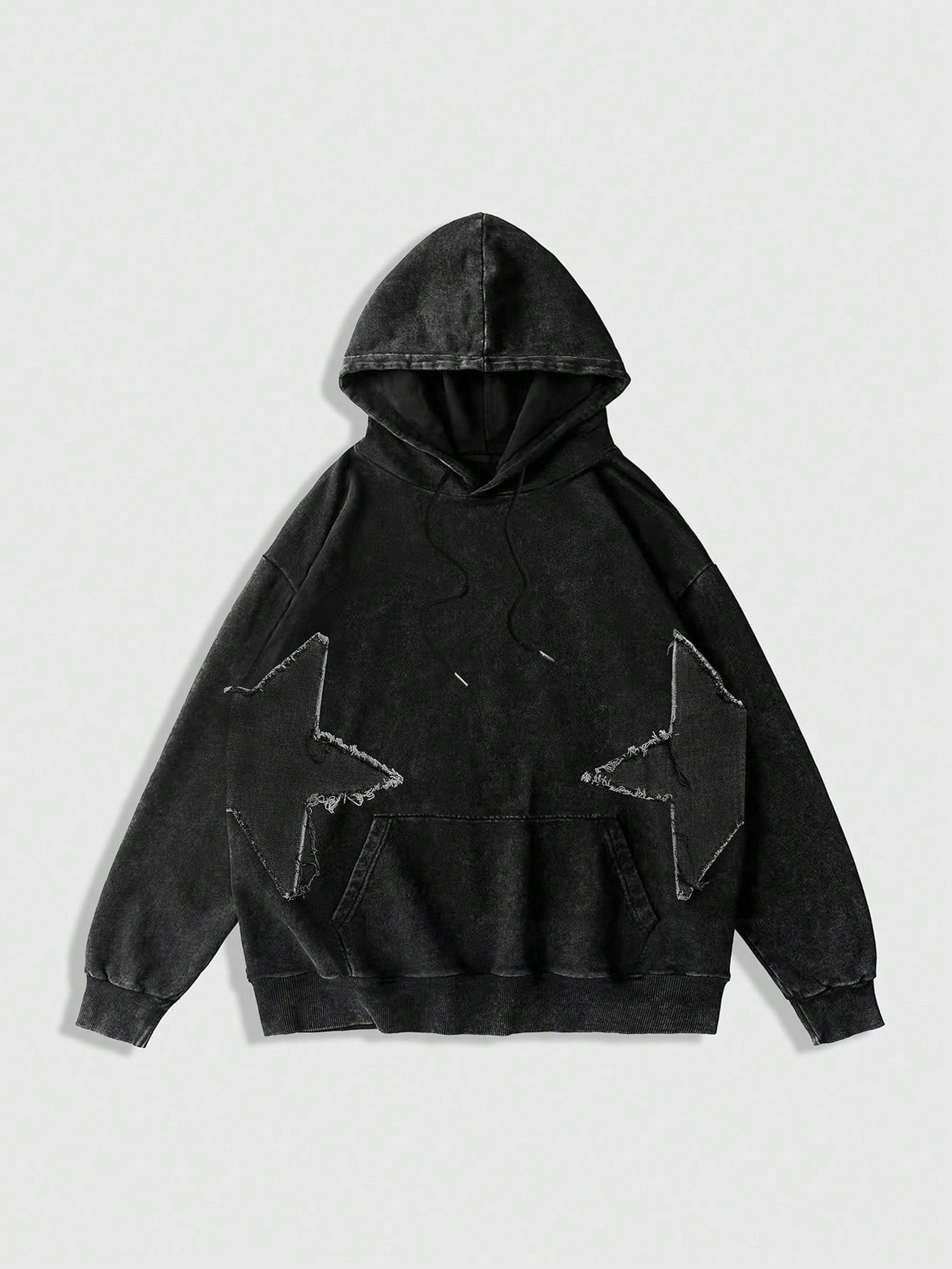 Street Life Herren Frühlings- und Herbstpullover mit loser Passform, Sternenmuster und Kapuze mit Kordel