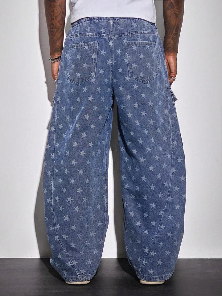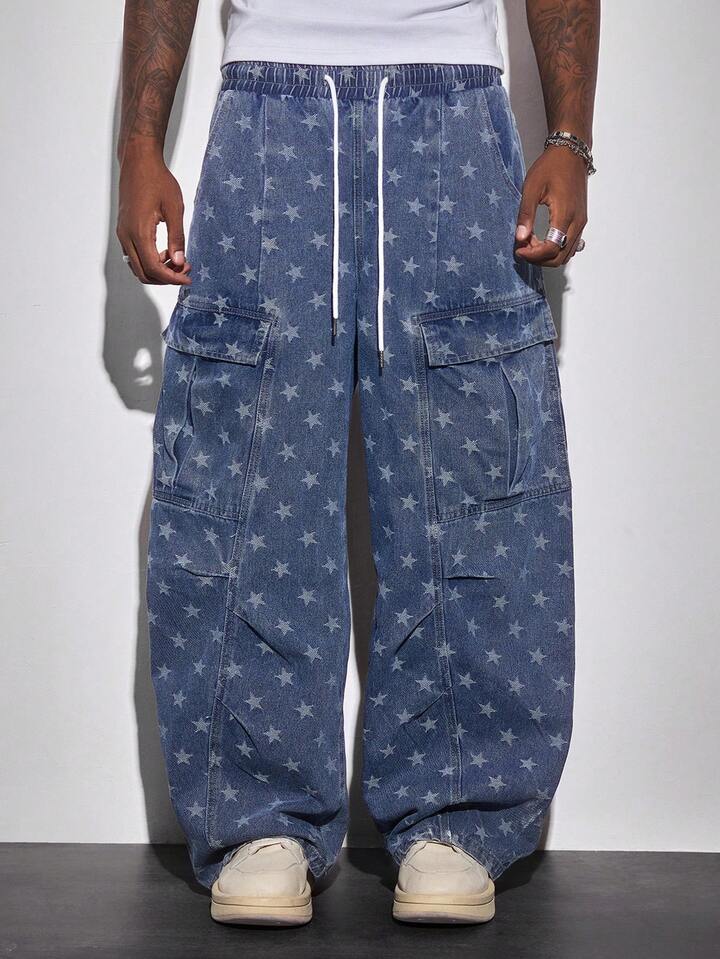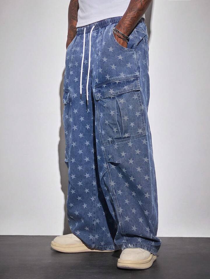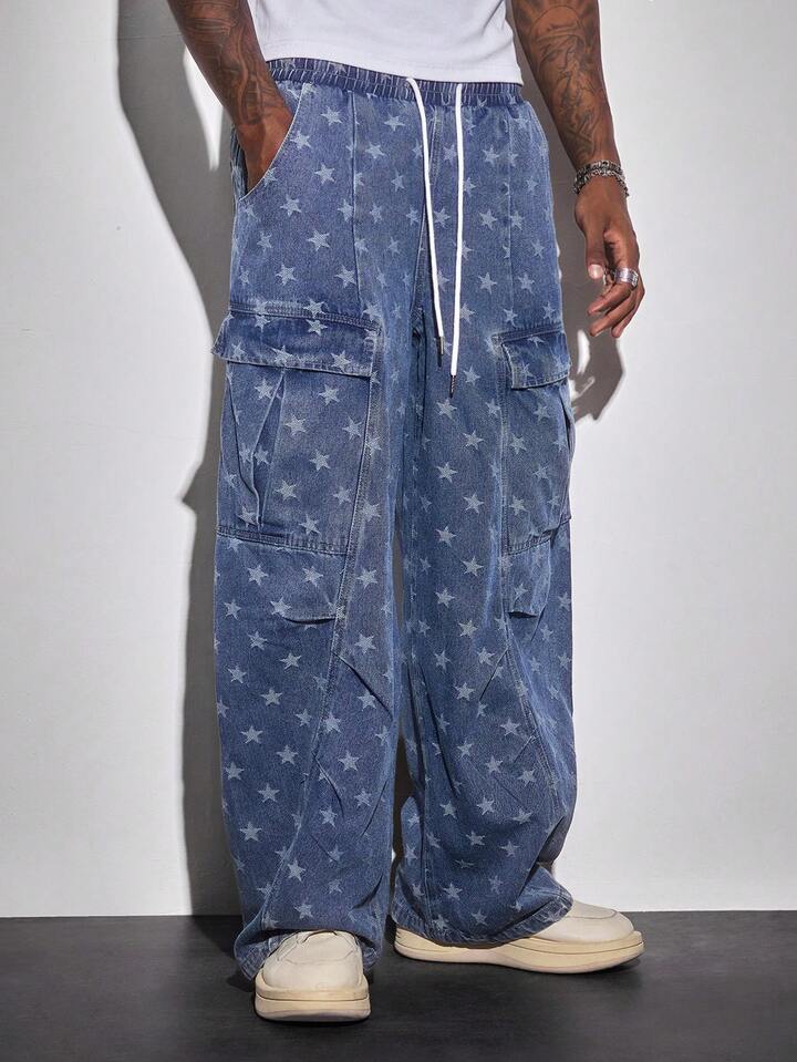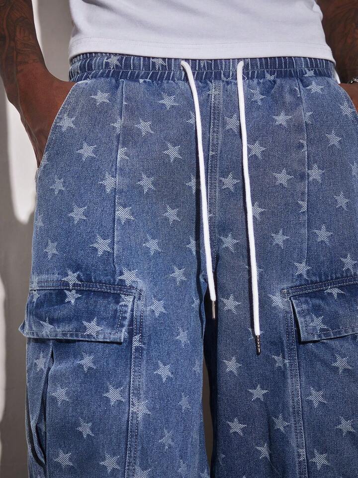 Street Life Herren Jeans mit Sternenmuster, Cargo-Taschen und Destroyed-Waschung