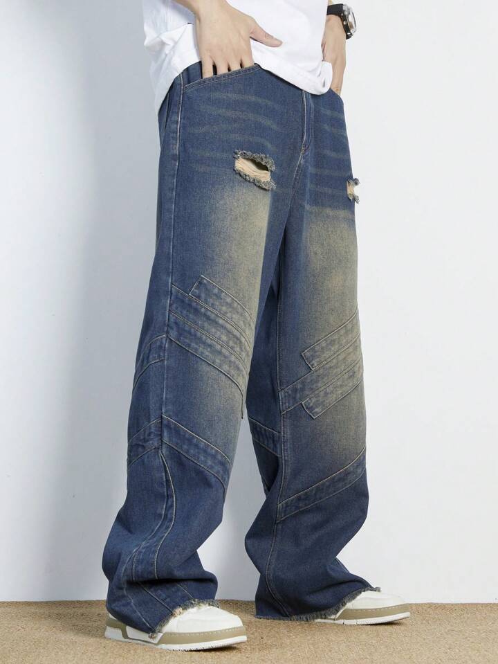 Street Life Herren Jeans Mit Geradem Bein Und Löchern