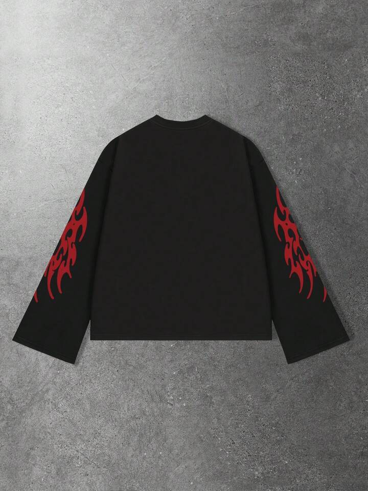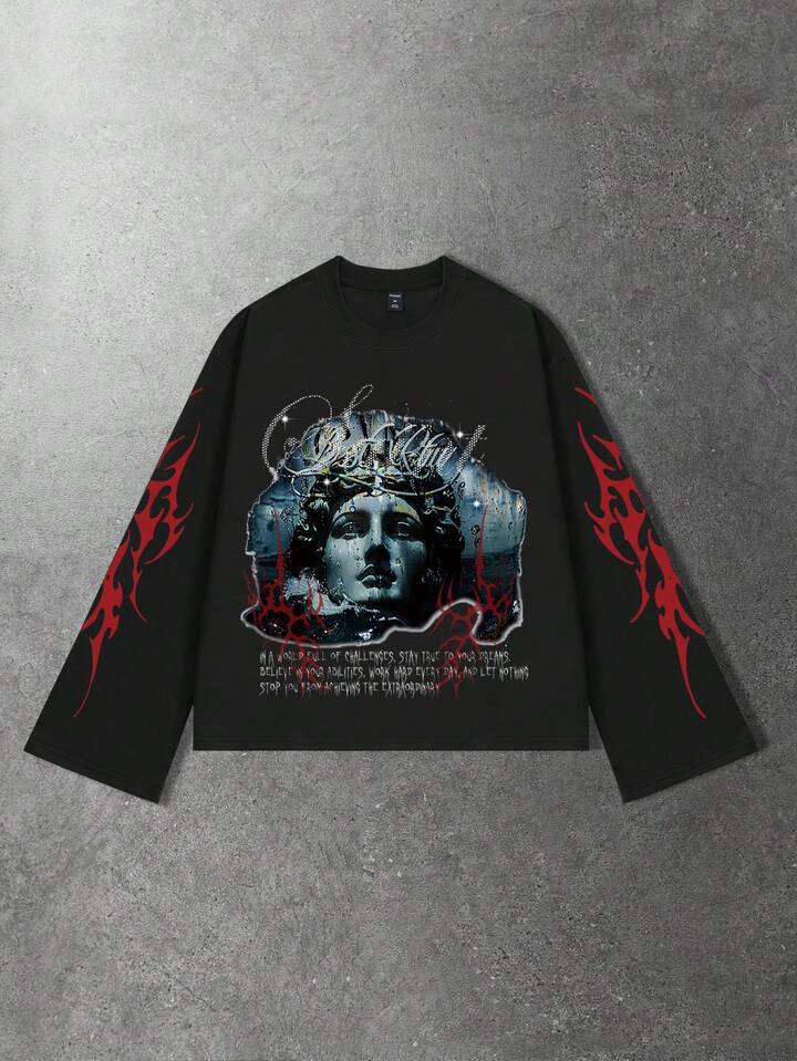 Street Life Herren Straßen-Langarm-T-Shirt mit dunkler Figurenprint, locker geschnitten