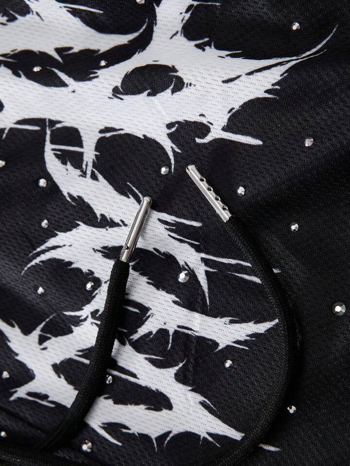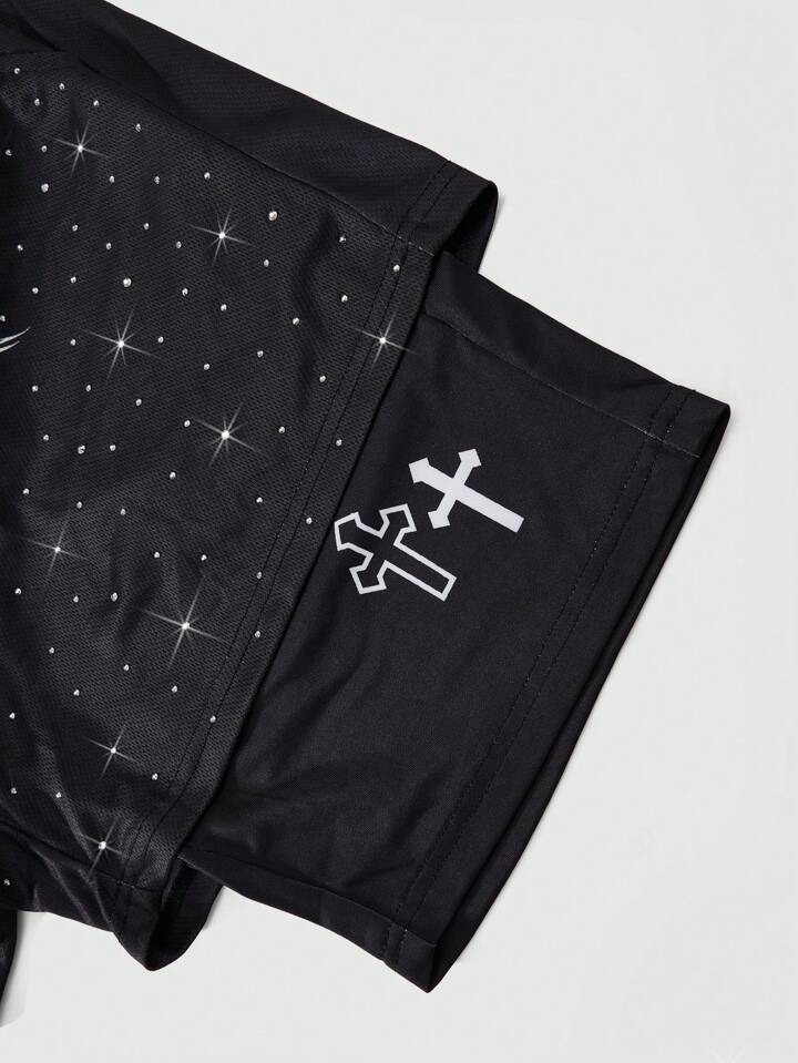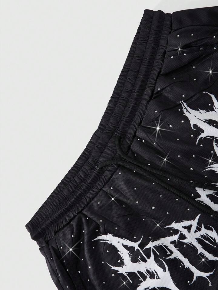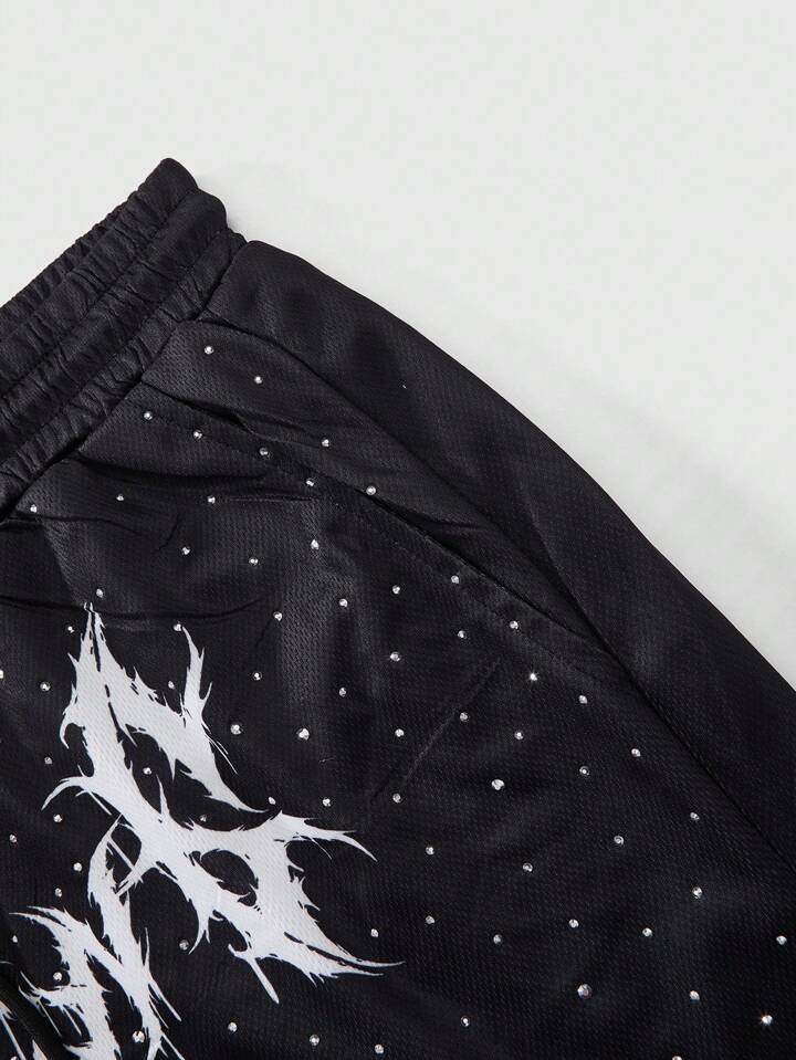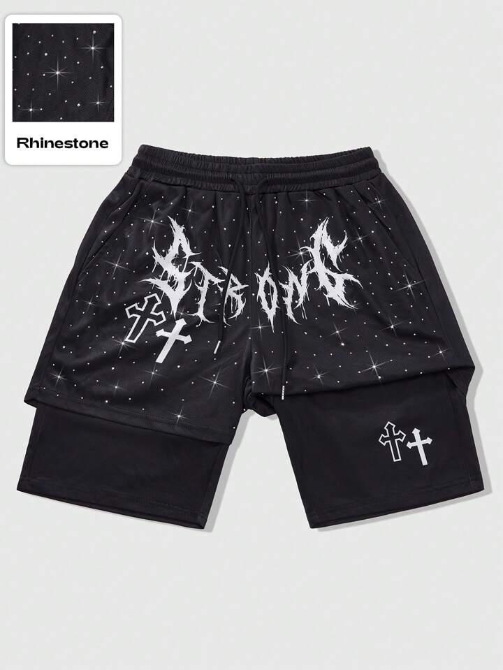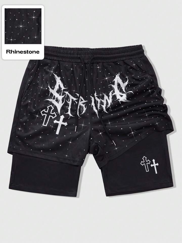 Street Life Herren Streetwear 2-in-1 Shorts, Grafik-Muster mit Strass-Englischbuchstaben und Gothic-Elementen, Halloween