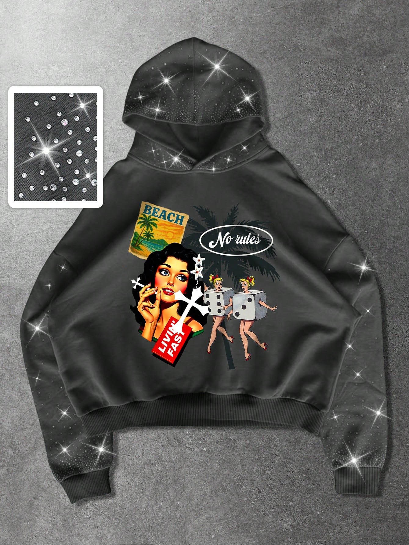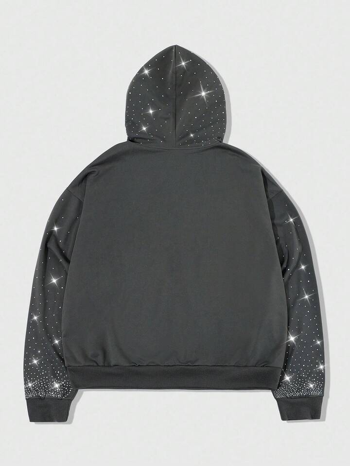 Street Life Herren Straßen-Buchstaben & Ziffern Grafik Strass Dekor Hoodie Sweatshirt, Lässig Alltags-Tragen, Langarm Oberteil