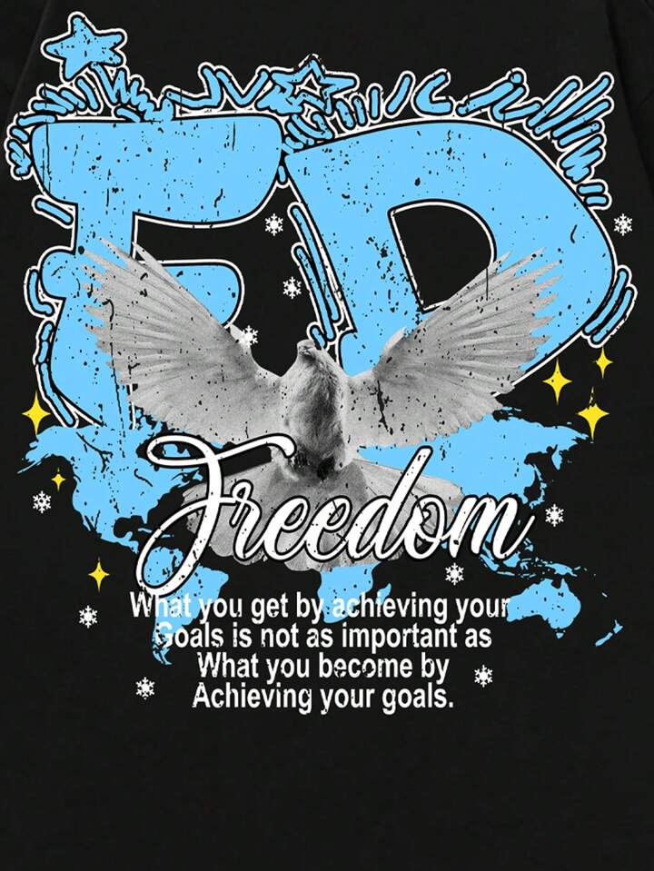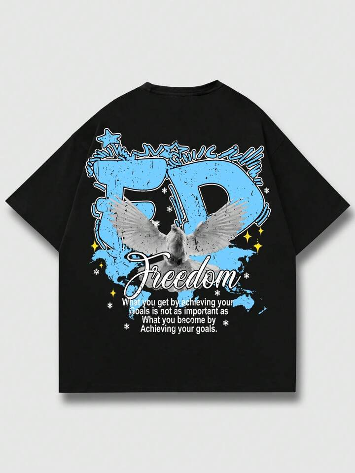 Street Life Herren Slogan & Tauben Muster Rundhals Kurzarm Lässig T-Shirt