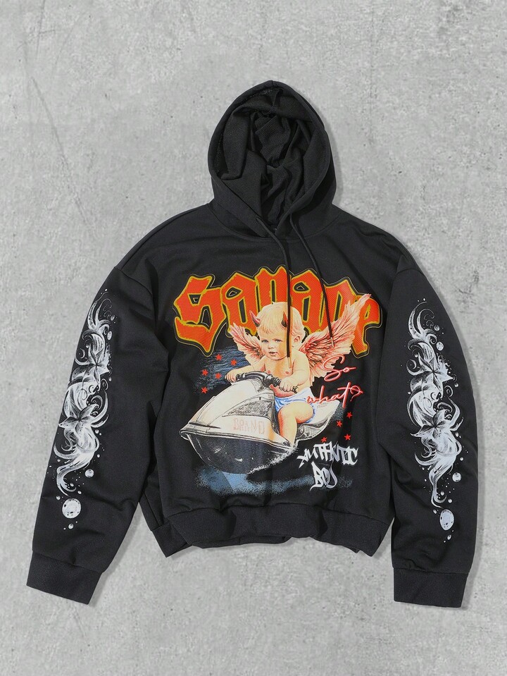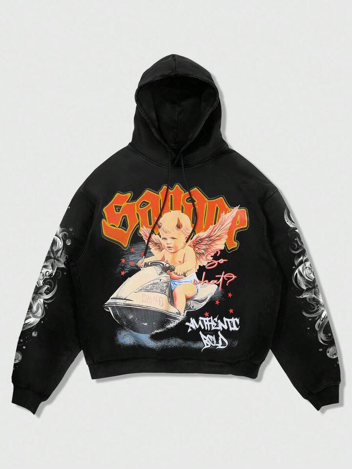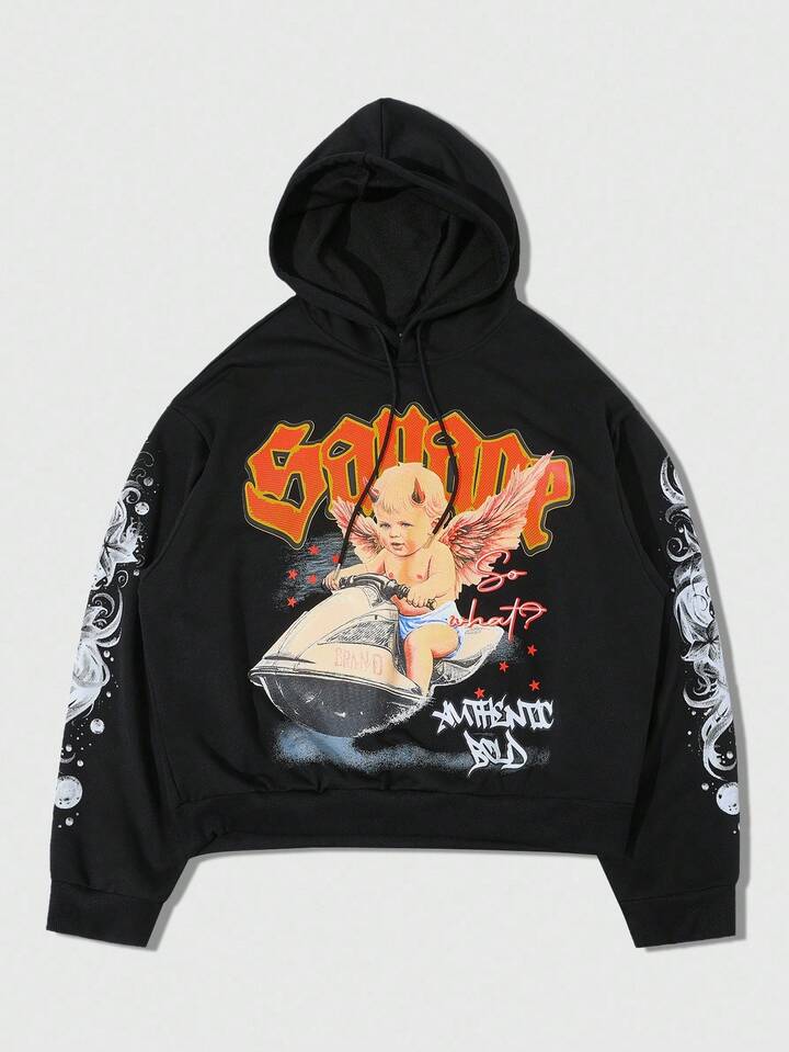 Street Life Herren Street Speedboat Engel Muster Kapuzen-Sweatshirt mit Kordelzug, für den Herbst