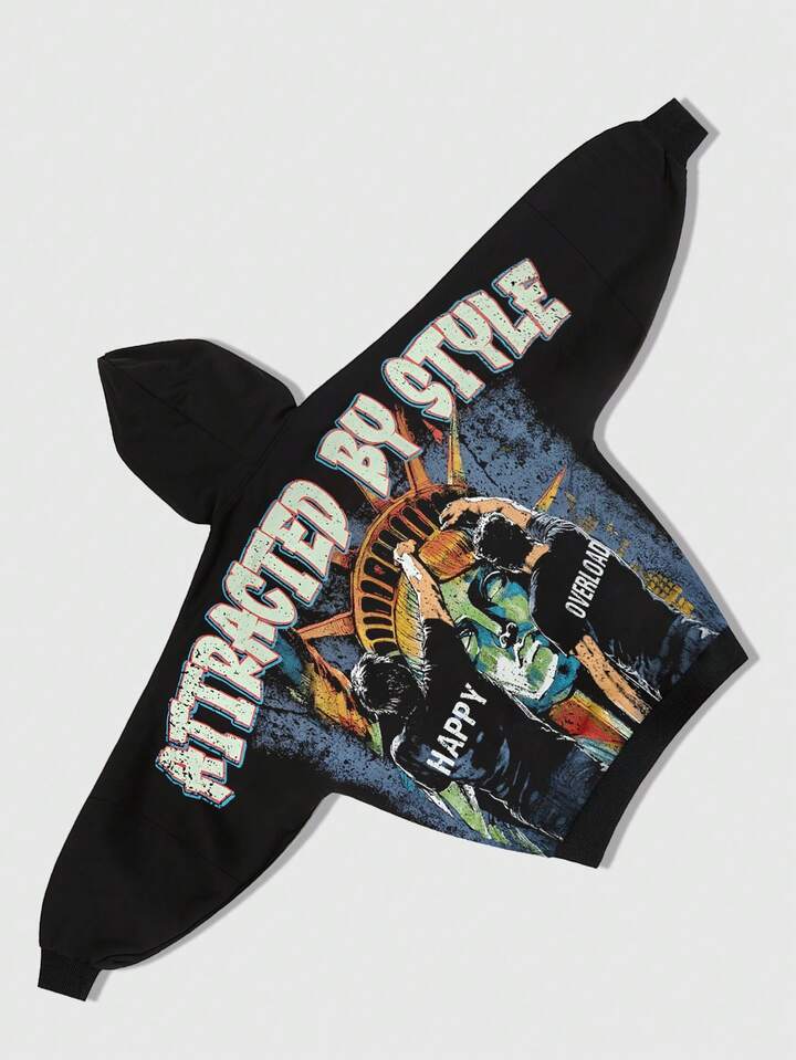 Street Life Herren Streetstyle Kapuzenpullover mit Buchstaben-Muster, Lässig, Herbst