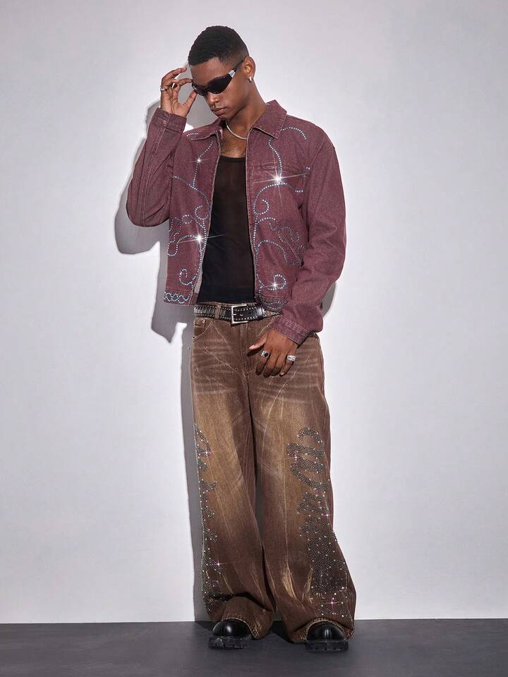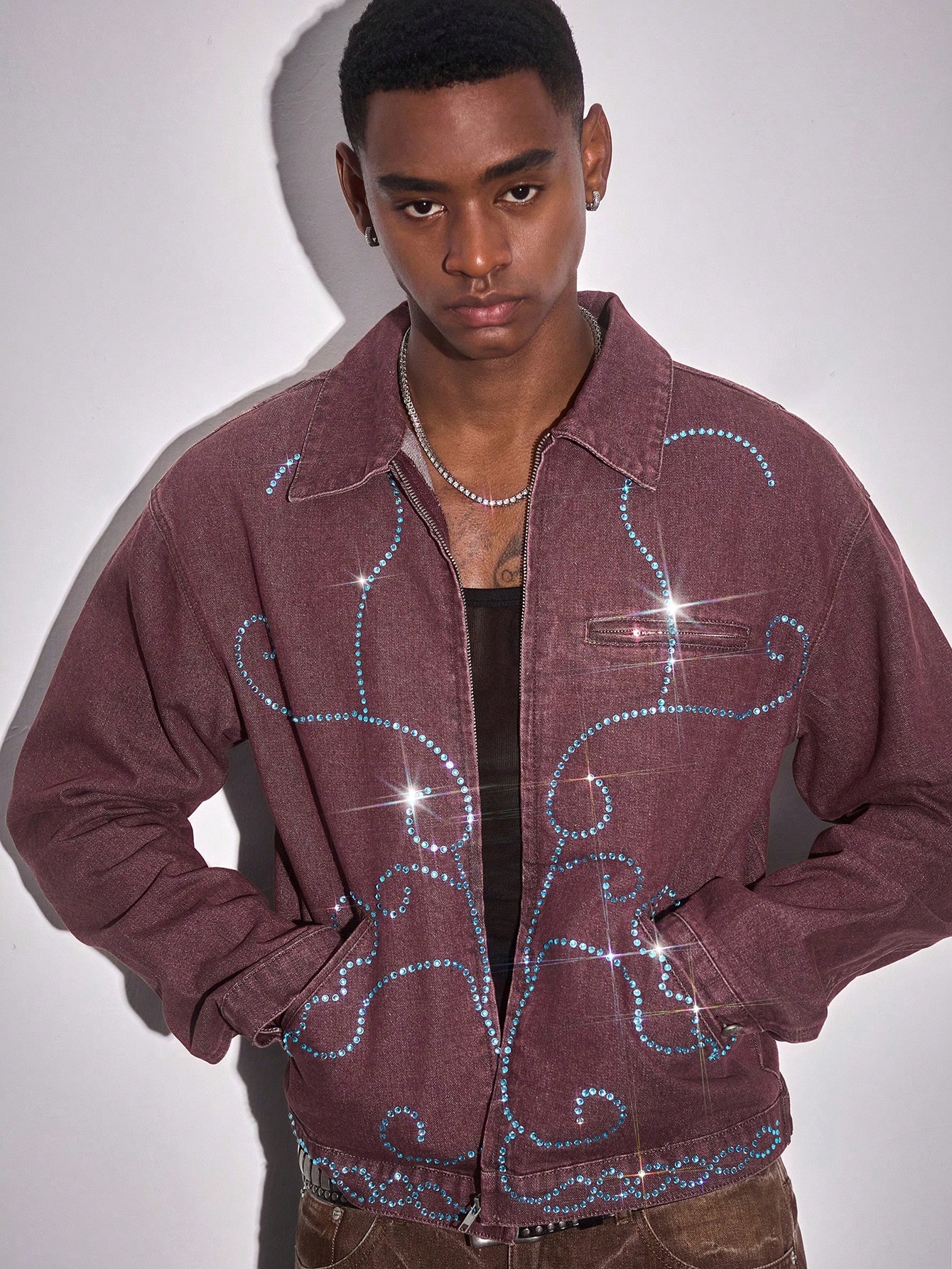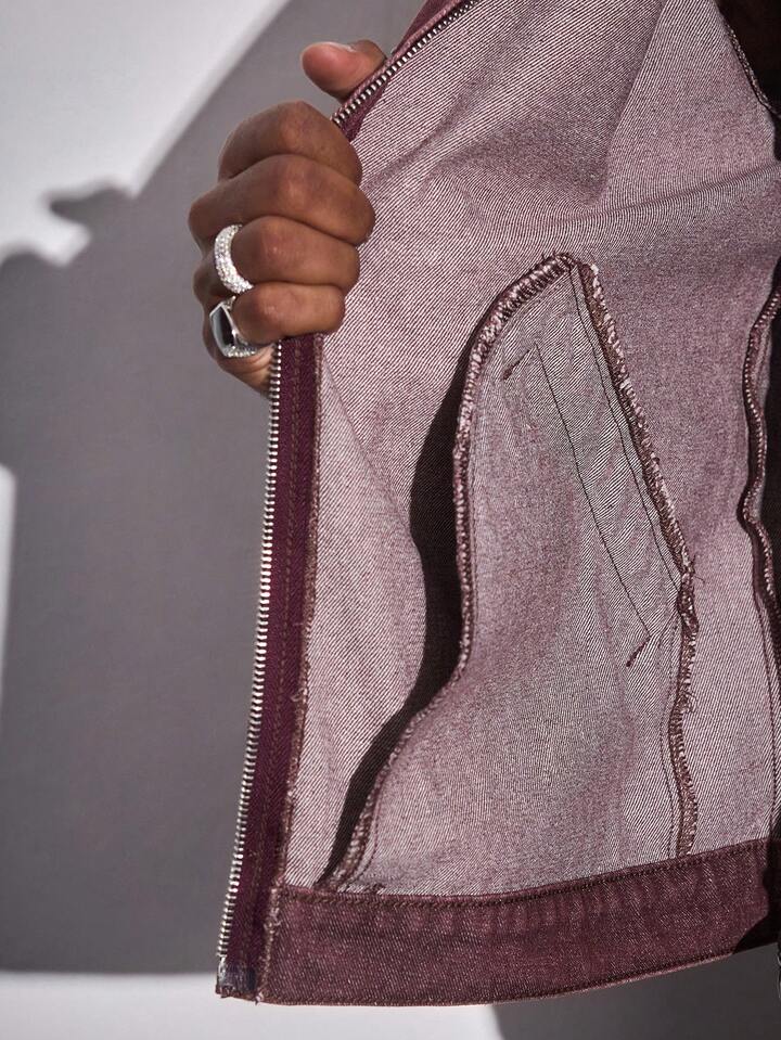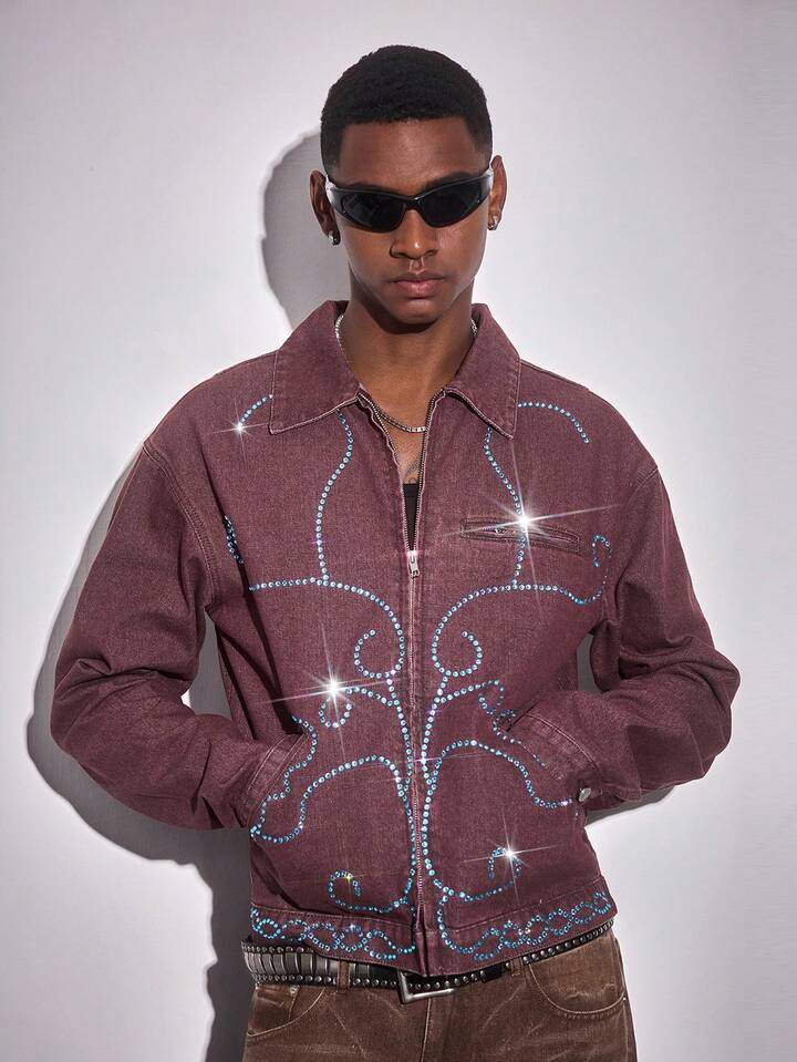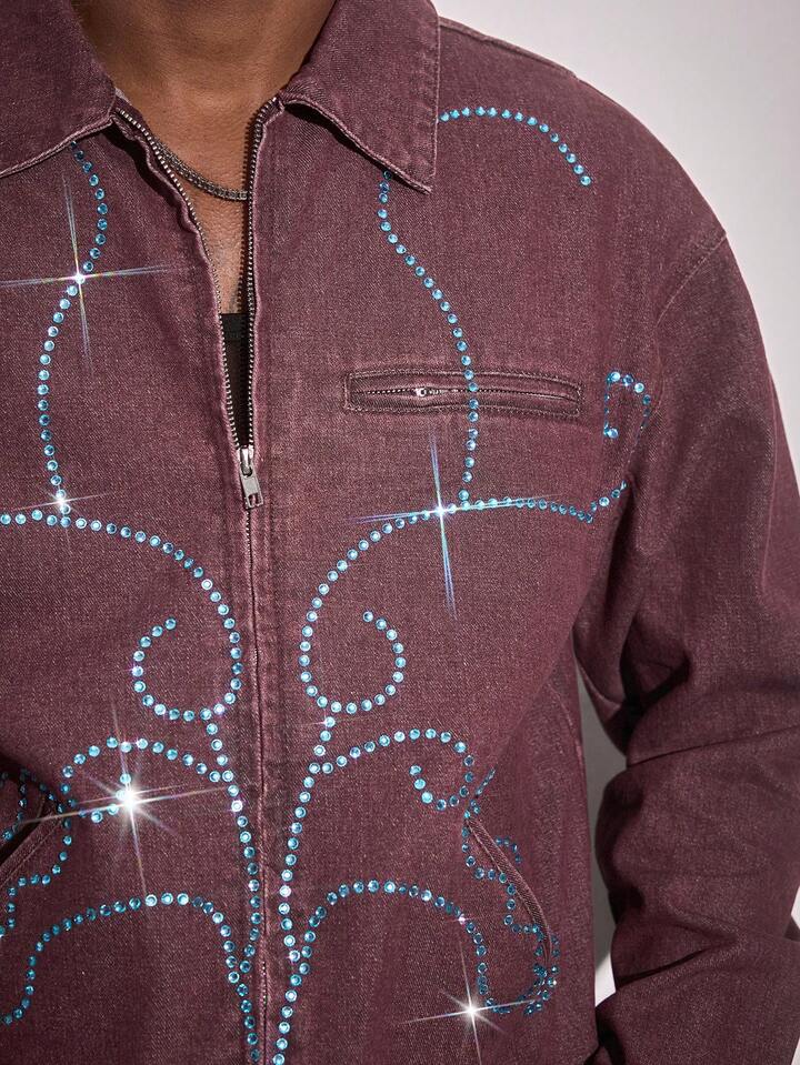 Street Life Herren Denim Jacke mit türkisfarbenem Kragen, Langarm, Taschen und Reißverschluss Vorderseite, Lässig