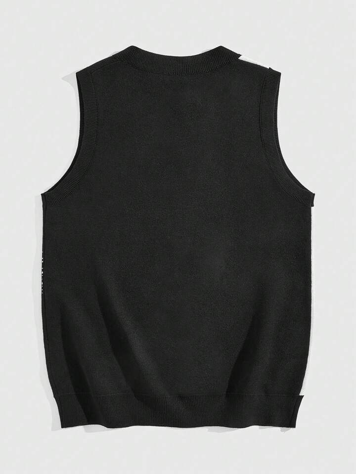 Street Life Herren V-Ausschnitt ärmelloses Pullunder mit Gesichtsmuster, lässig, Lustig, Hipster-Stil, für Schule