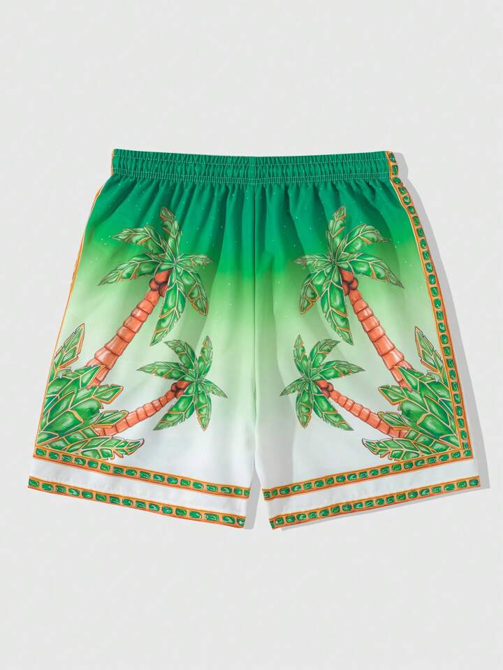 Street Life Herren Lässig Shorts mit Palmbaum Aufdruck und Kordelzug an der Taille, Frühling/Sommer