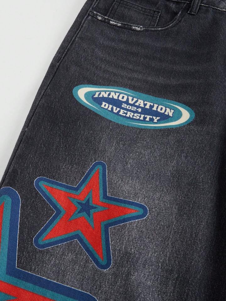 Street Life Herren Vintage Malerei Weitgeschnittene Jeans