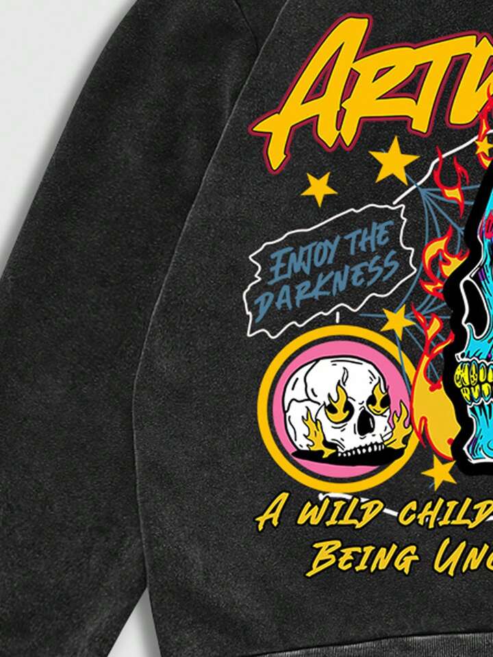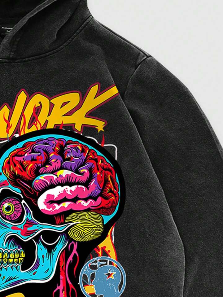Street Life Herren Vintage gewaschenes Graffiti bedruckter Kapuzenpullover