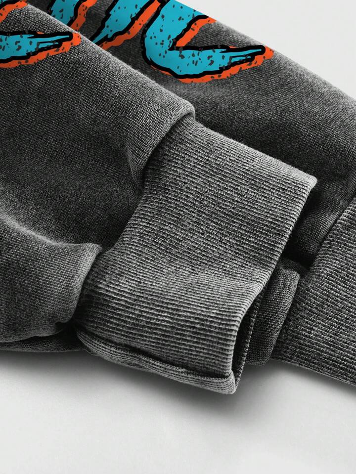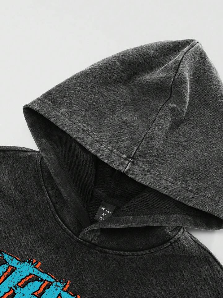 Street Life Herren gewaschener lustiger Graffiti-Portrait-Muster ausgebleichter Hoodie, High-Street-Stil
