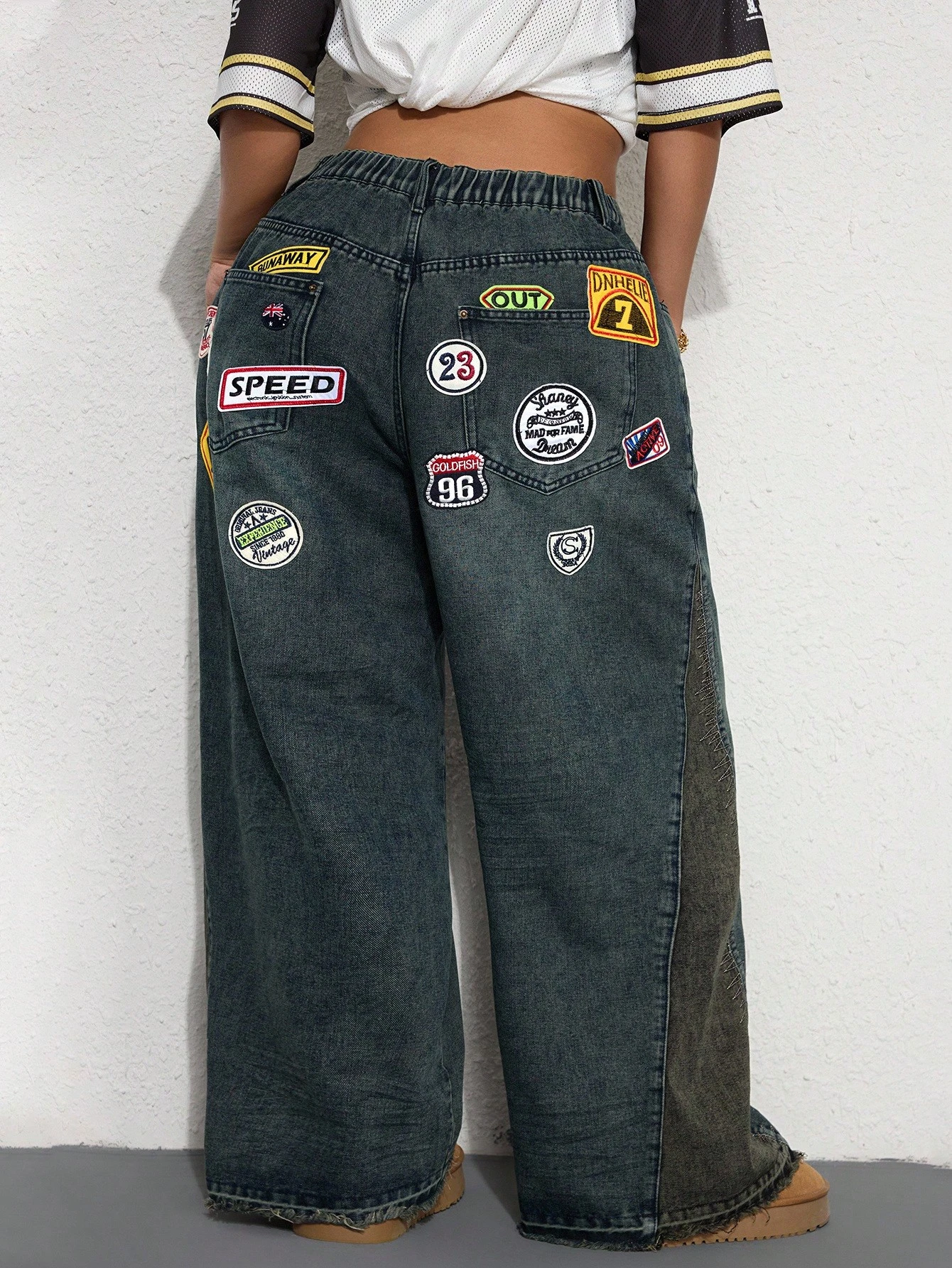 Street Life Jeans mit weitem Bein, Farbblockdesign und Taschen in Große Größen
