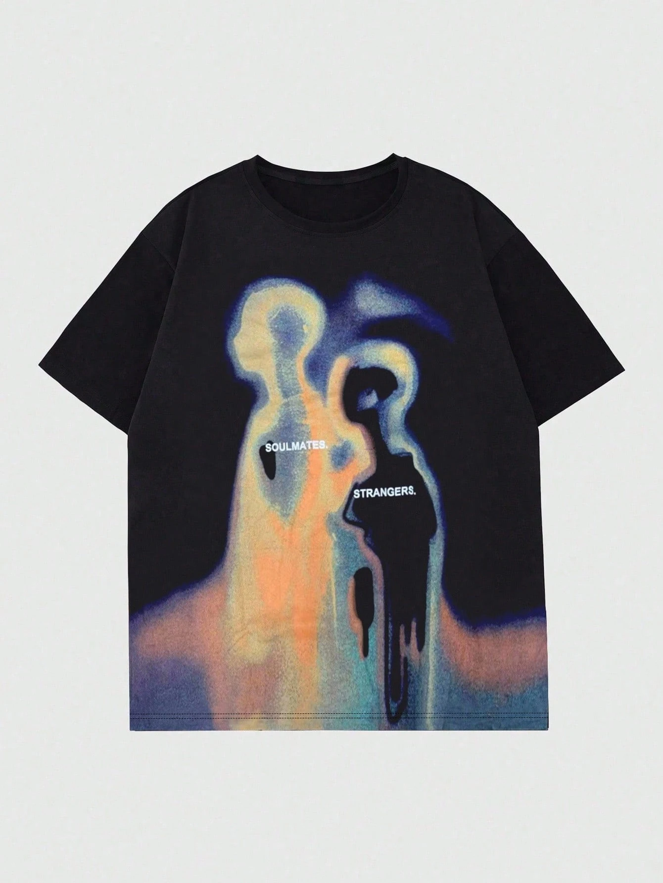 Street Life Retro Streetwear Silhouette & Thermografie Muster Kurzarm T-Shirt, Sommer