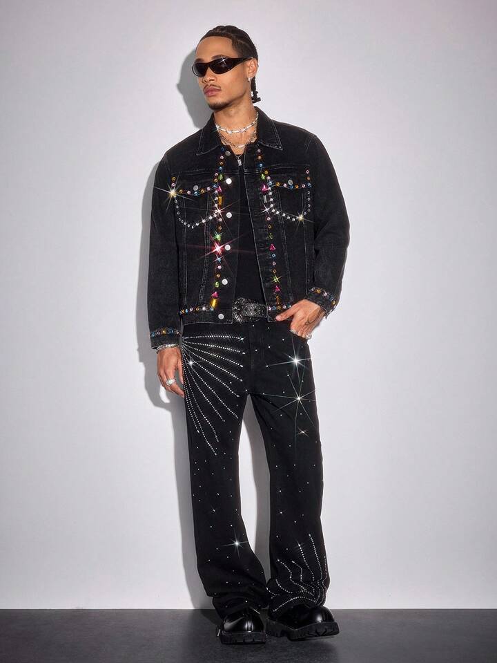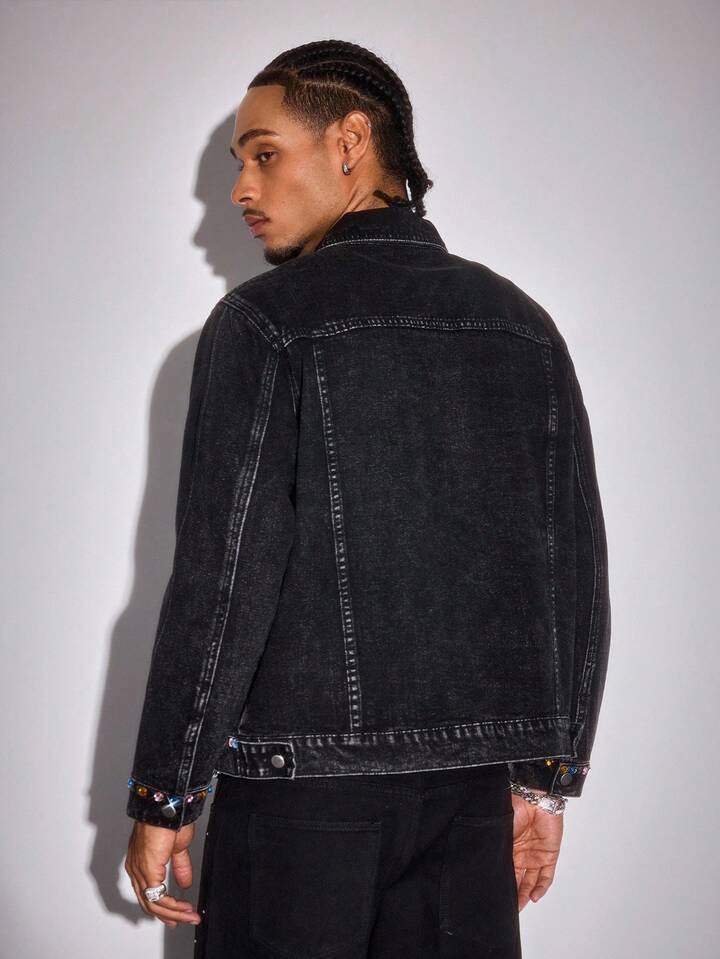 Street Life Lässiges, locker sitzendes Herren Jeanshemd mit Strass-Verzierung, für den Herbst
